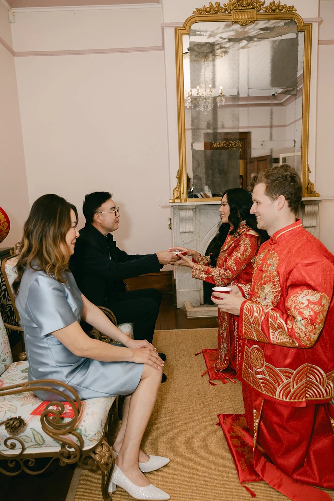 Before the ceremony and celebrations began, Anne and Seb honoured a ritual that has long been part of weddings honouring Chinese heritage.