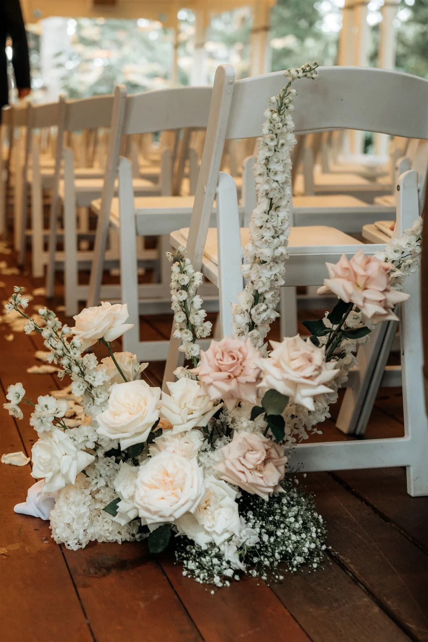 Their ceremony took place in the Pavilion, where the intimate, cozy space, soft lights and delicate florals enhanced the warmth of their vows.