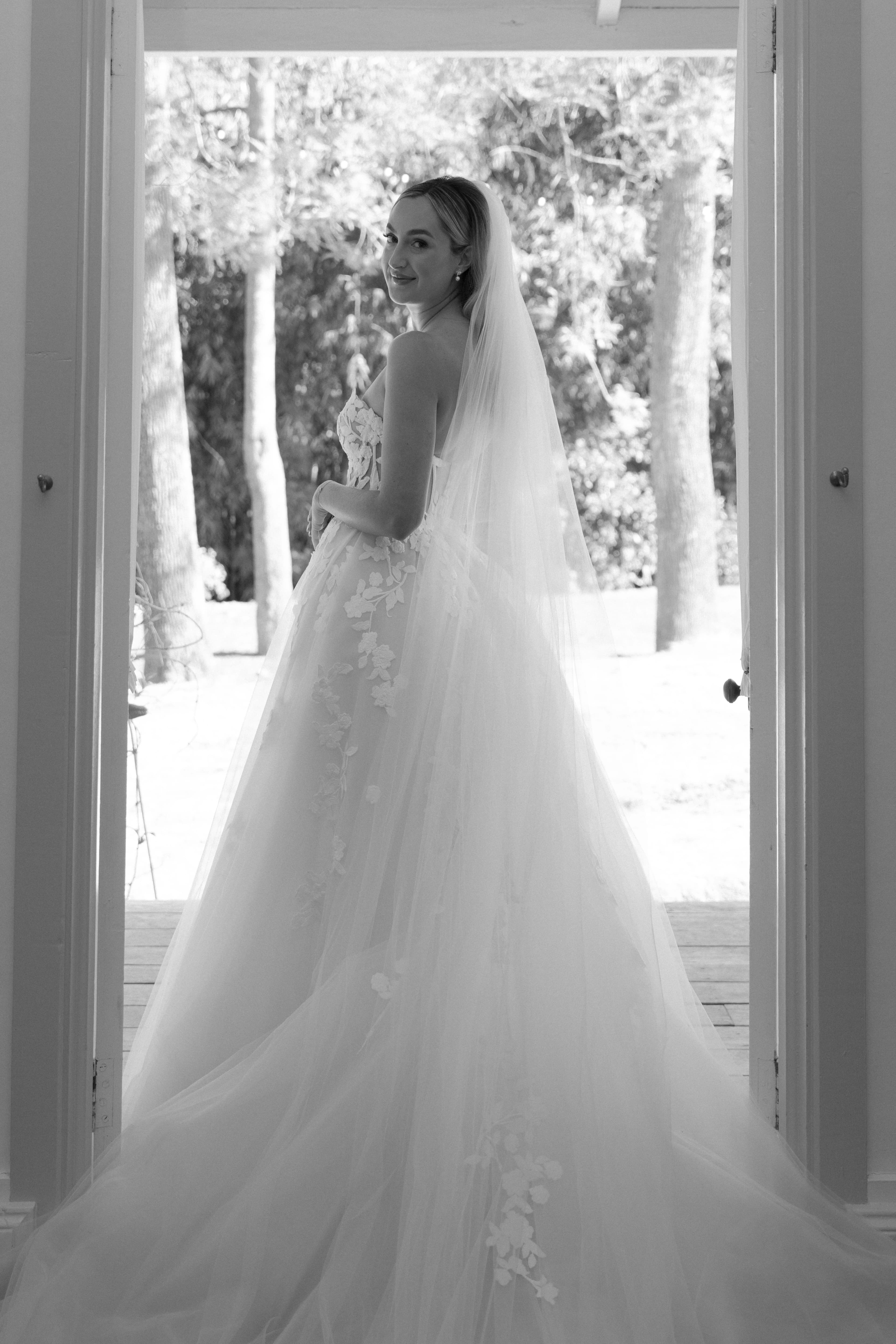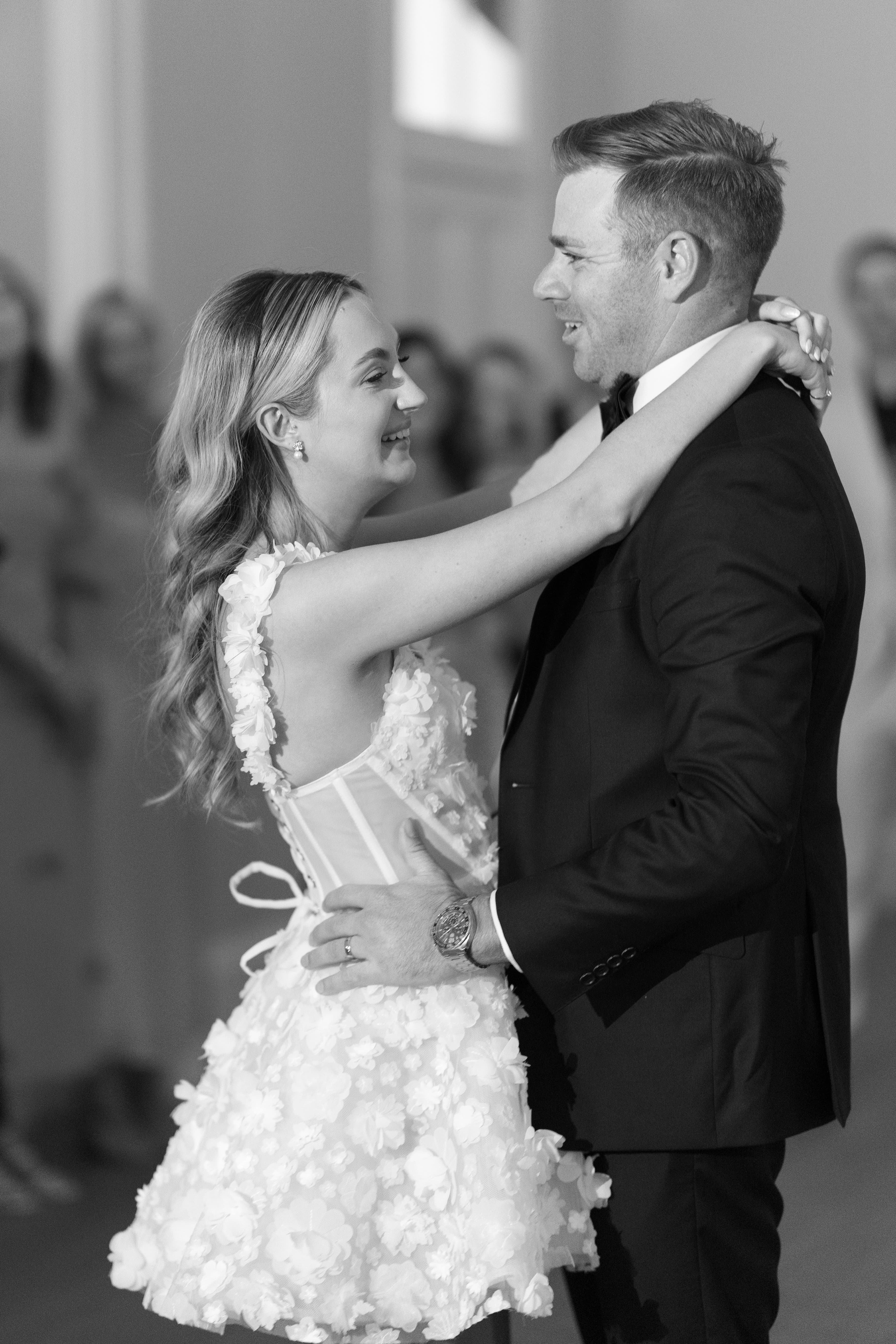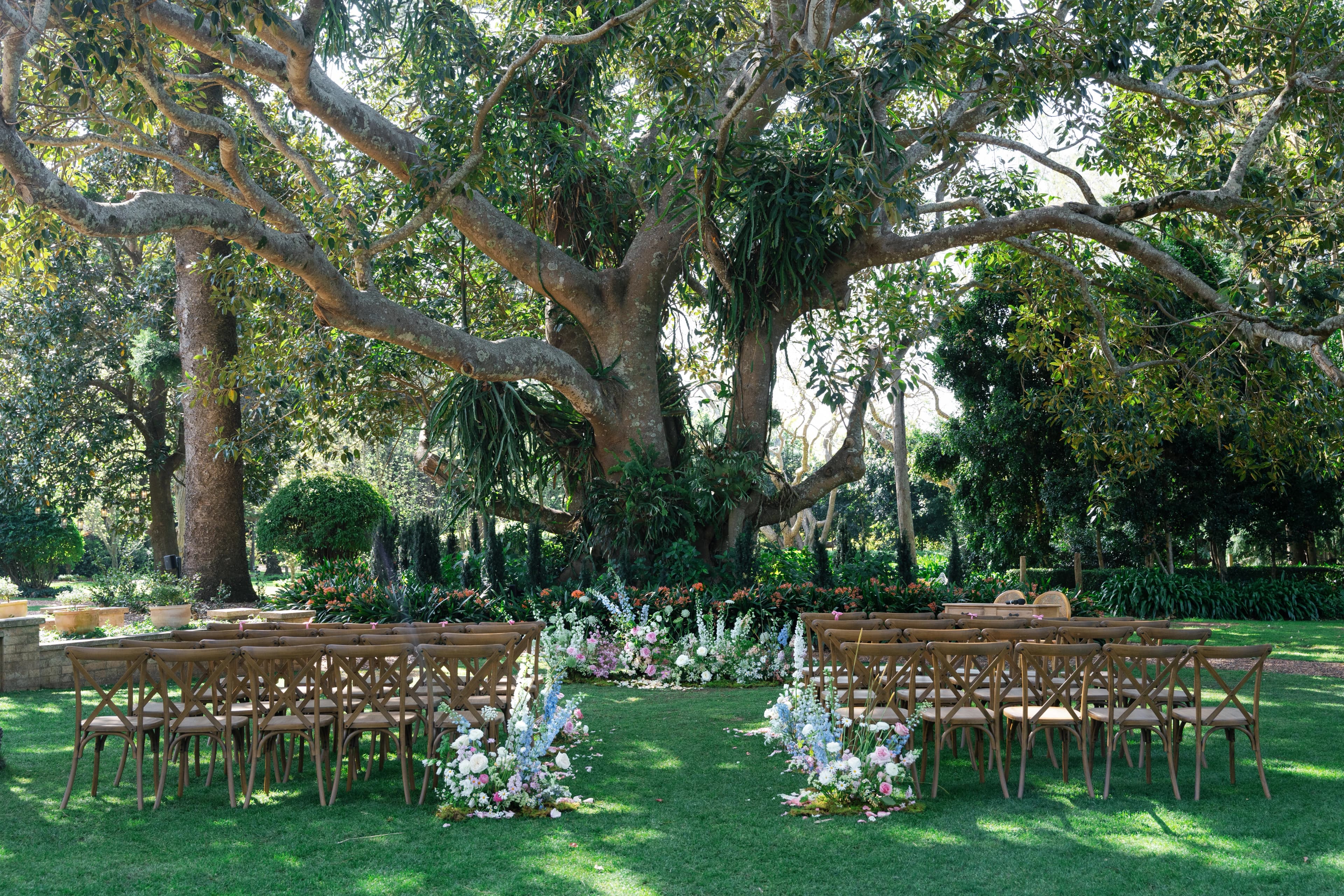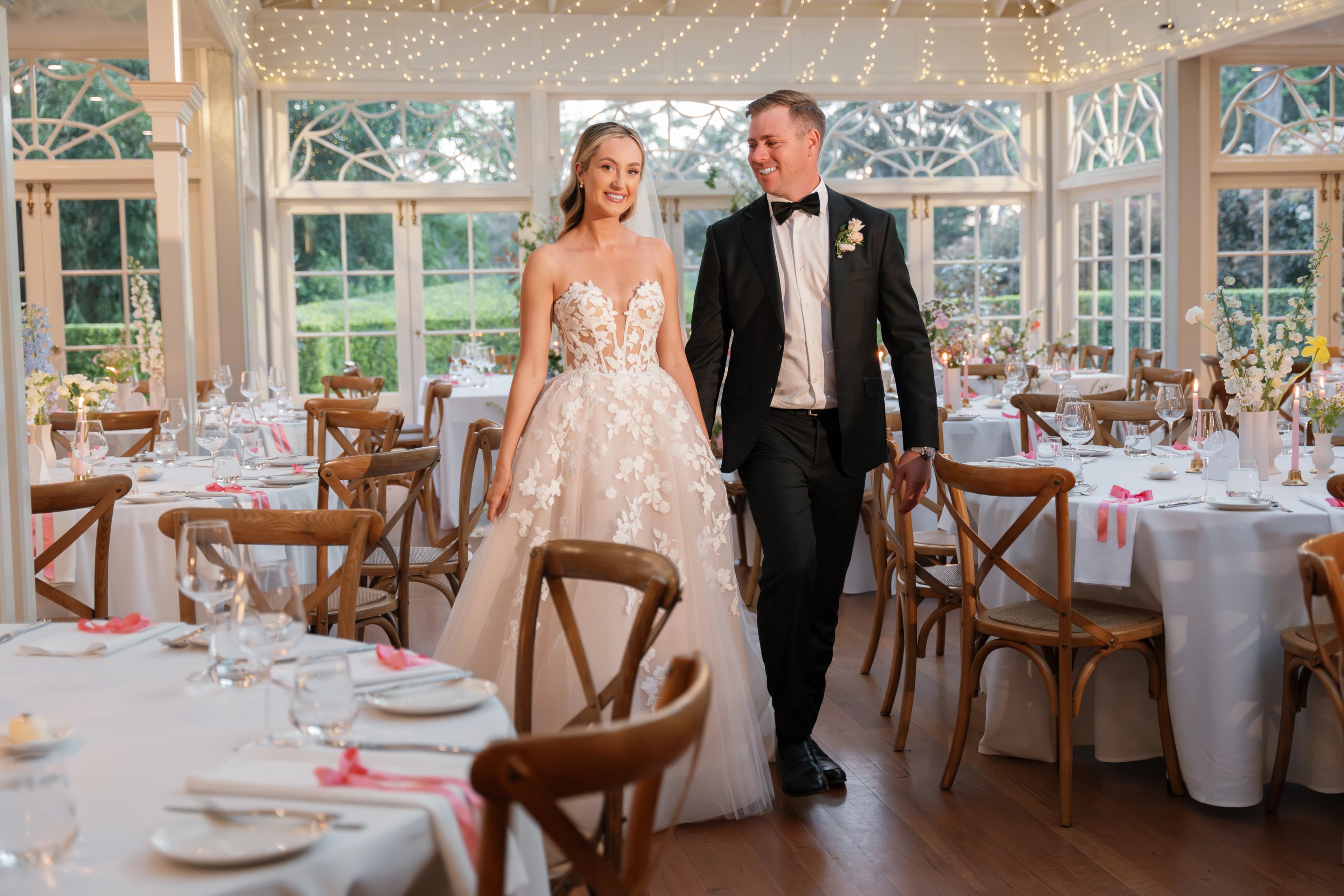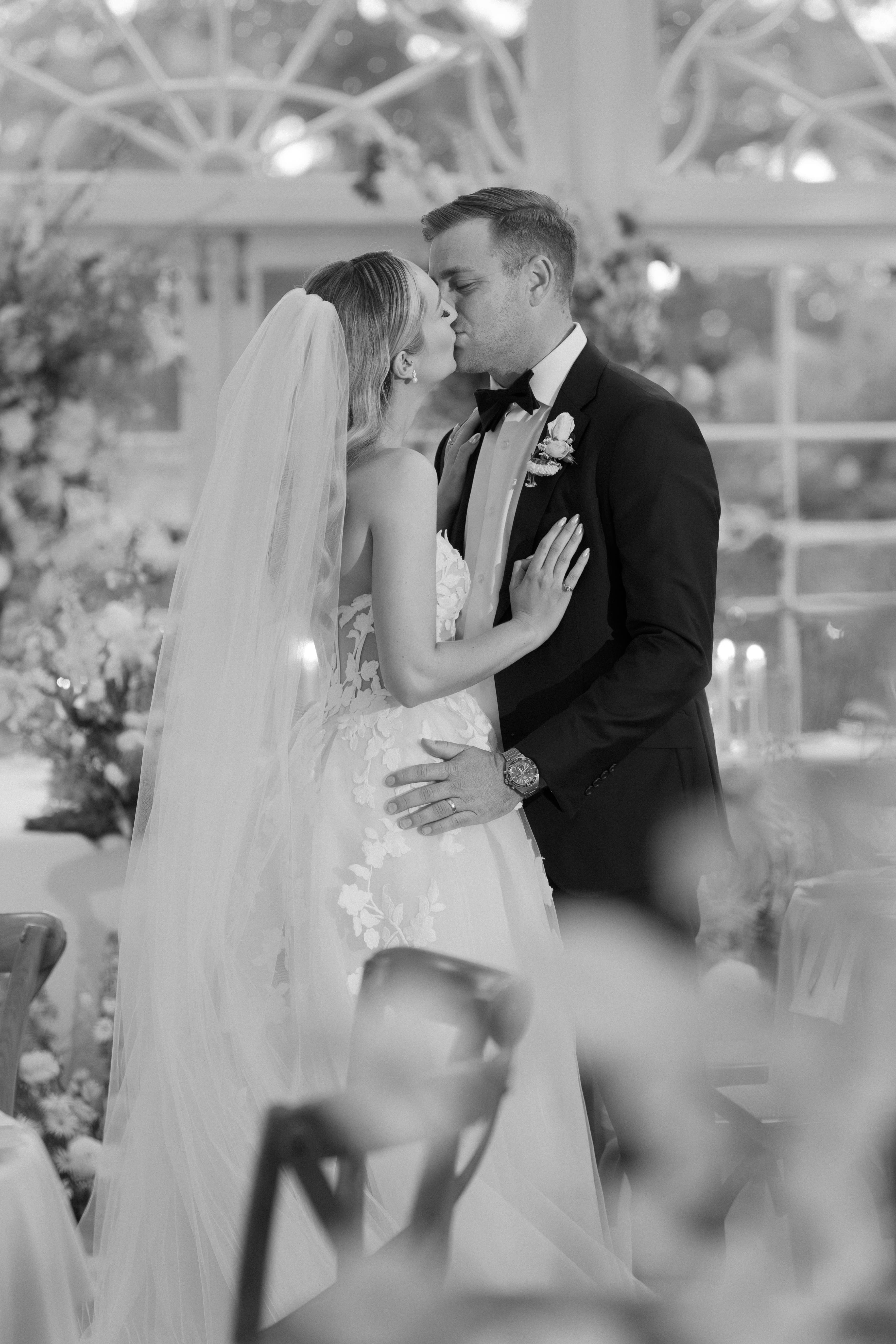 Soft light gathered beneath the ancient branches as they spoke their vows, the Governor’s Lawn hushed in golden calm. Her gown, a sweep of ivory silk, caught the breeze like breath, while garden florals in muted cream and blush framed the aisle in quiet grace. Guests rose with gentle reverence — a moment suspended, neither beginning nor end. Later, the Conservatory shimmered with candlelight, glass catching the rhythm of laughter and the slow unfurling of evening. Every detail — the lace-trimmed veil, the polished table settings, the stillness before dusk — felt like a note in a longer song, composed with tenderness and held by time.