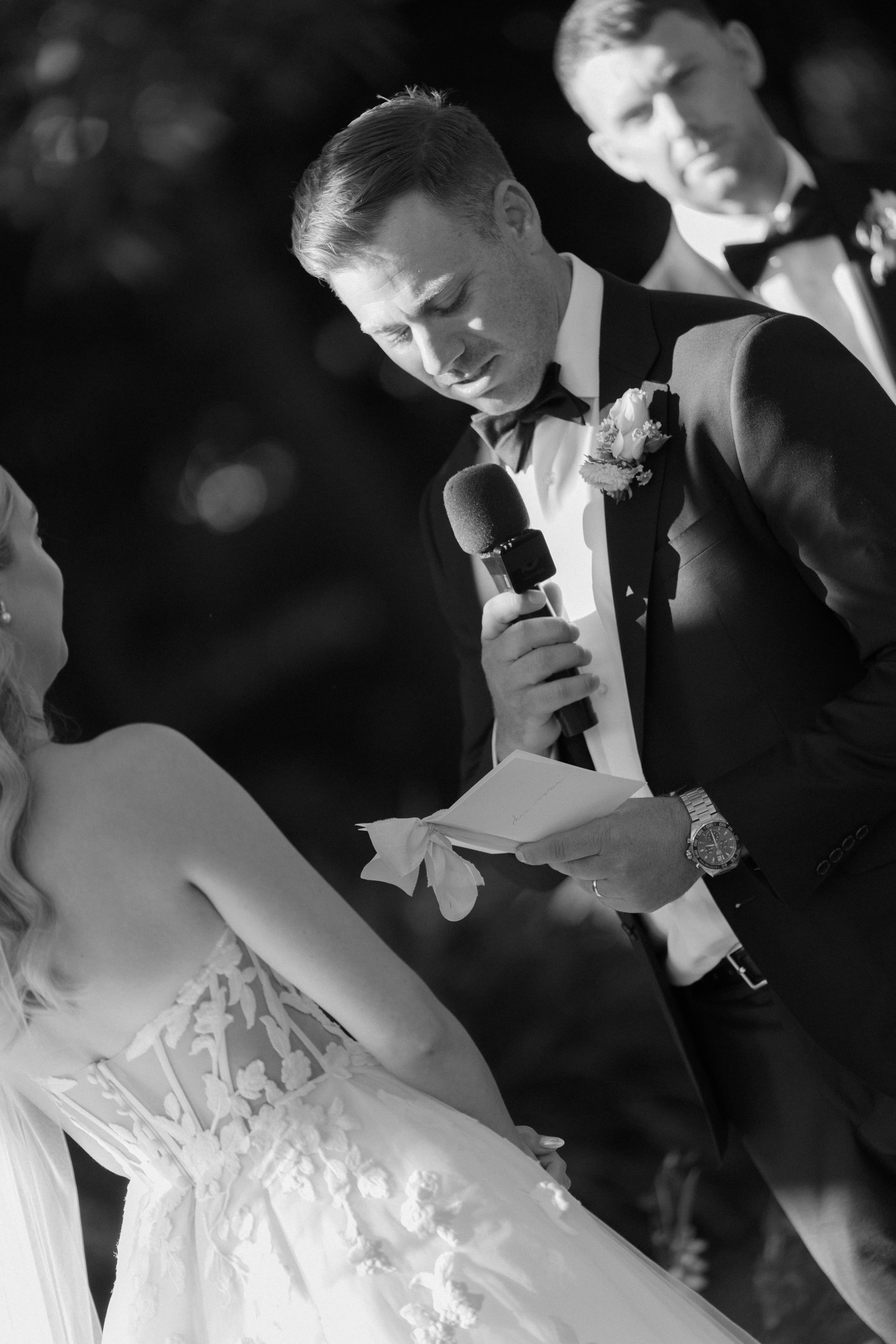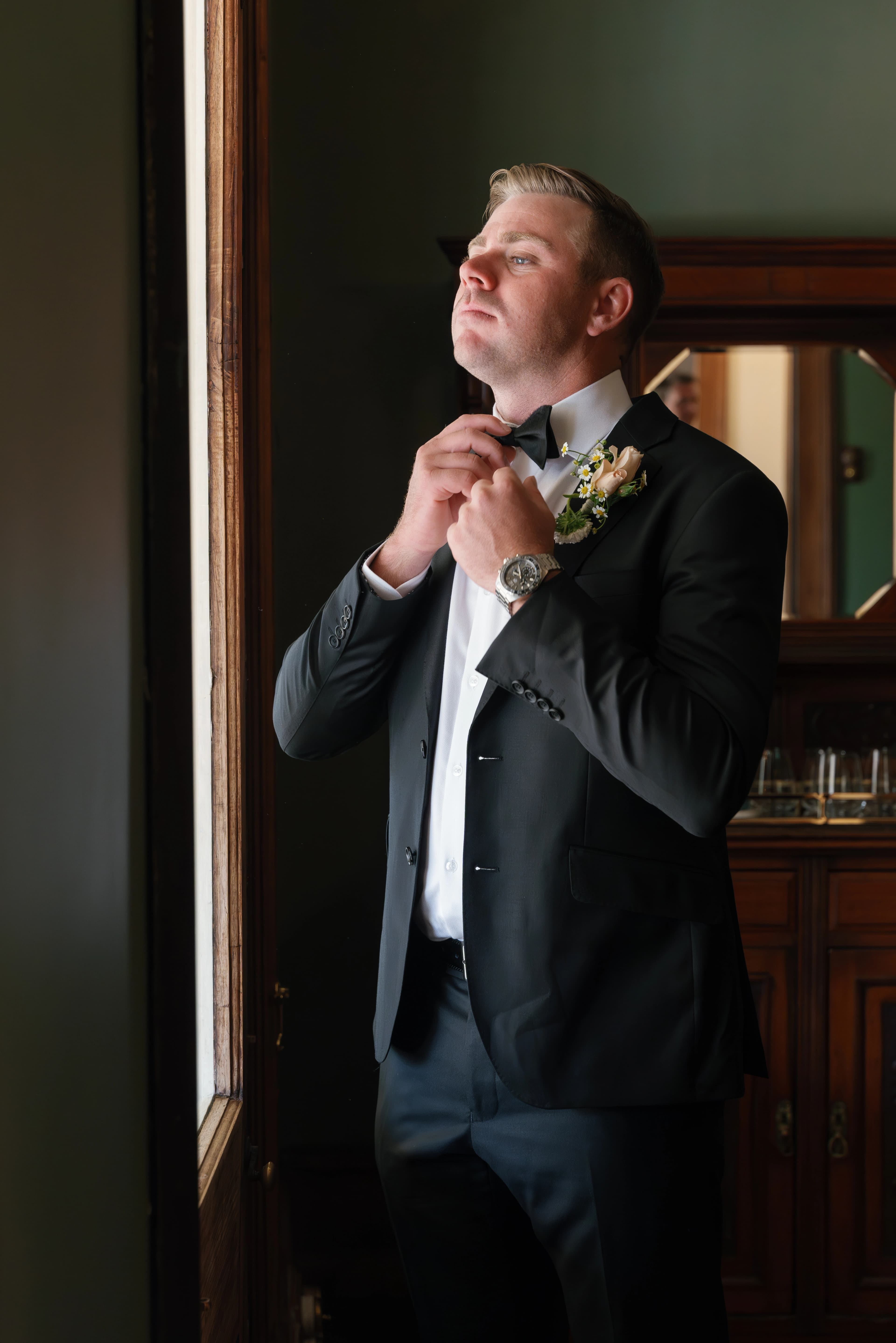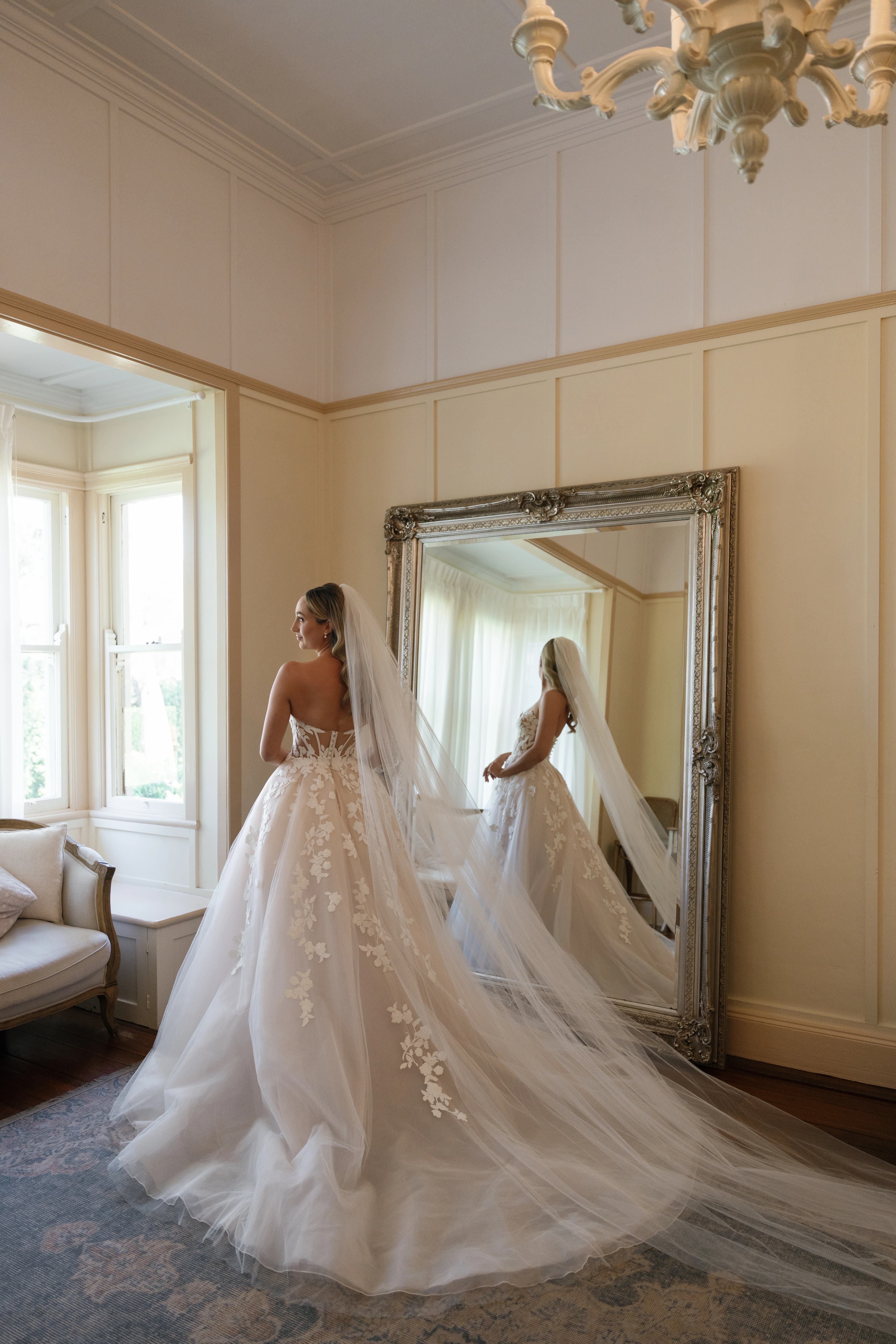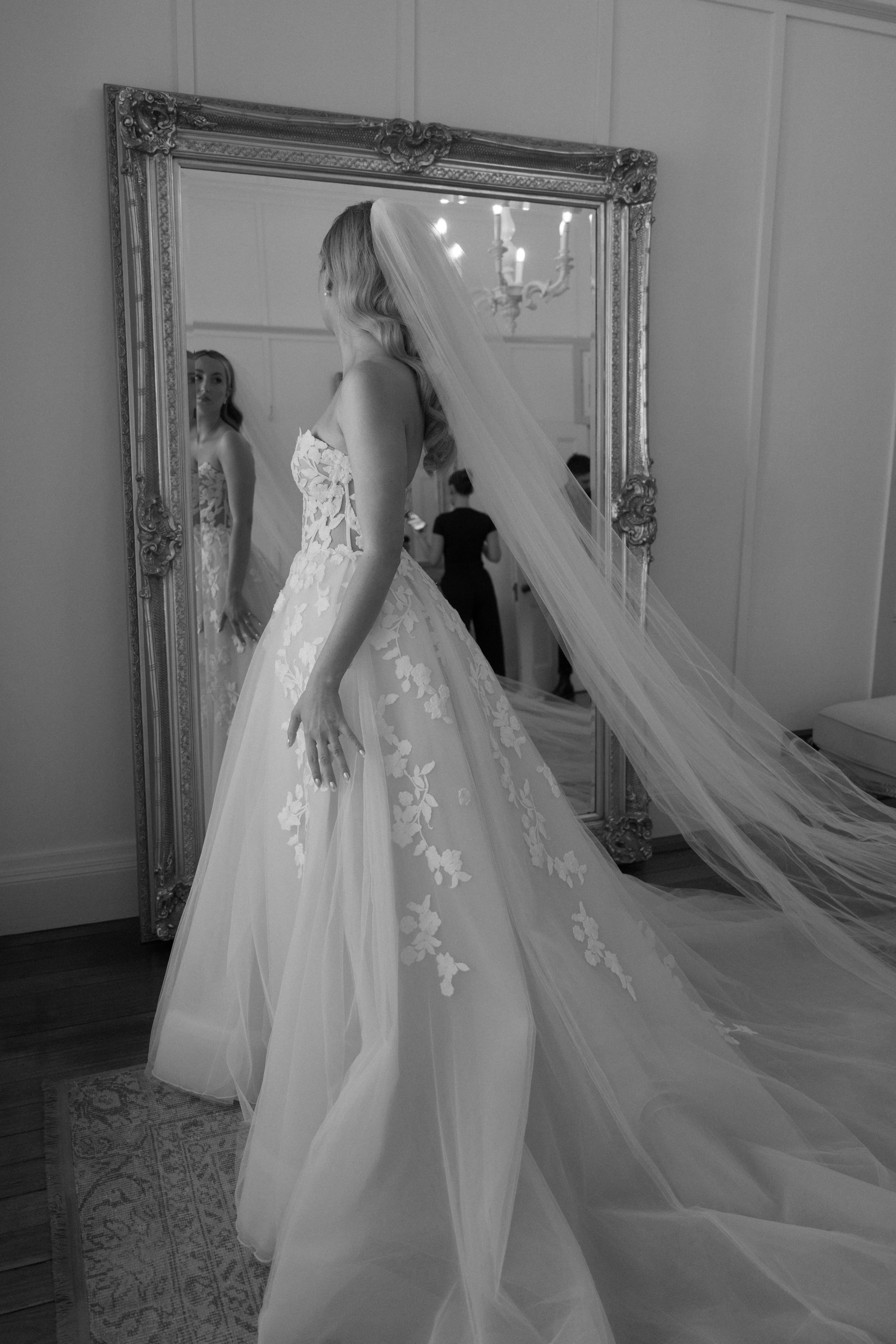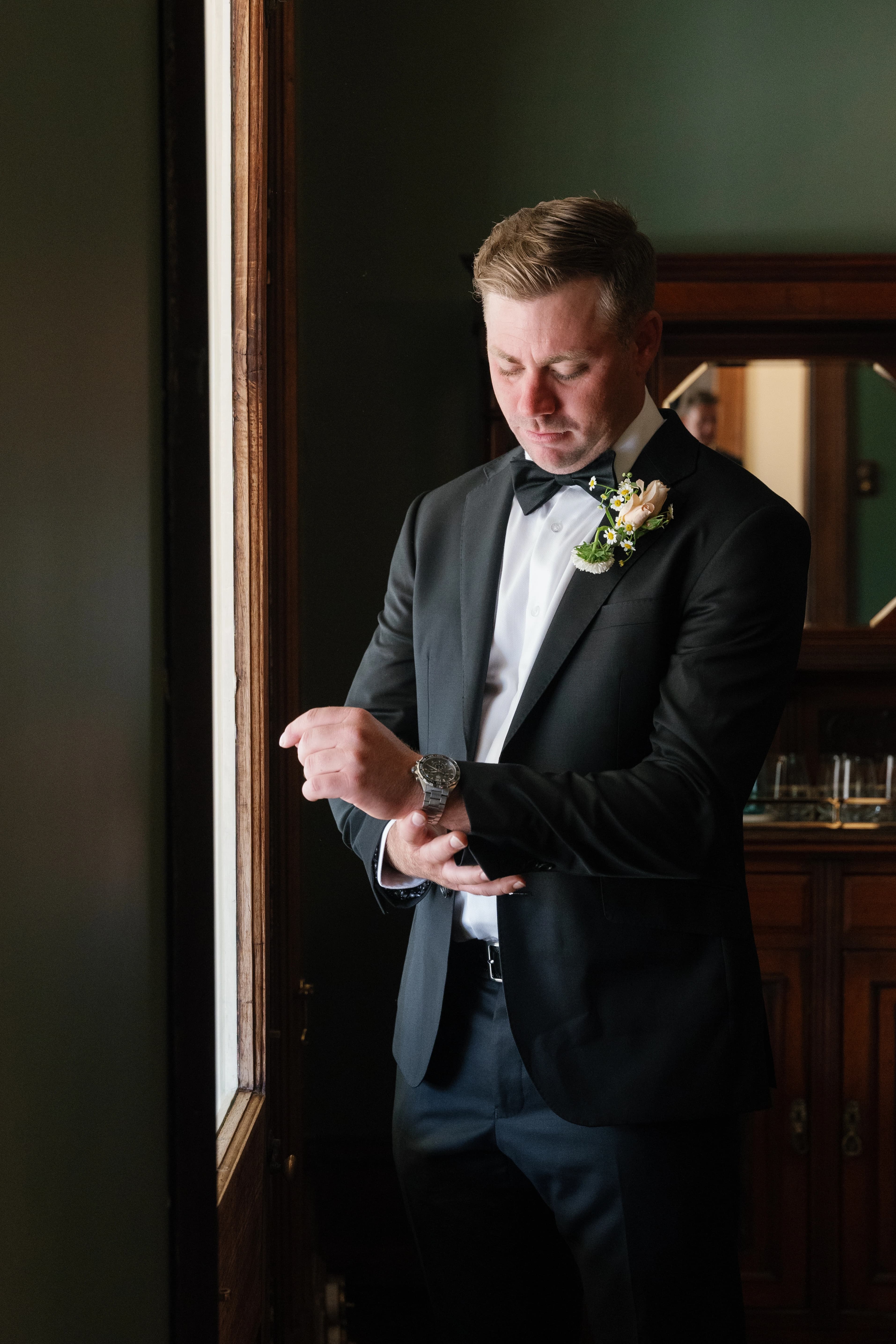 Soft light gathered beneath the ancient branches as they spoke their vows, the Governor’s Lawn hushed in golden calm. Her gown, a sweep of ivory silk, caught the breeze like breath, while garden florals in muted cream and blush framed the aisle in quiet grace. Guests rose with gentle reverence — a moment suspended, neither beginning nor end. Later, the Conservatory shimmered with candlelight, glass catching the rhythm of laughter and the slow unfurling of evening. Every detail — the lace-trimmed veil, the polished table settings, the stillness before dusk — felt like a note in a longer song, composed with tenderness and held by time.