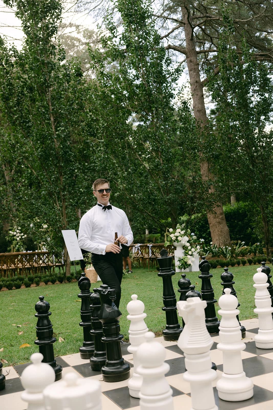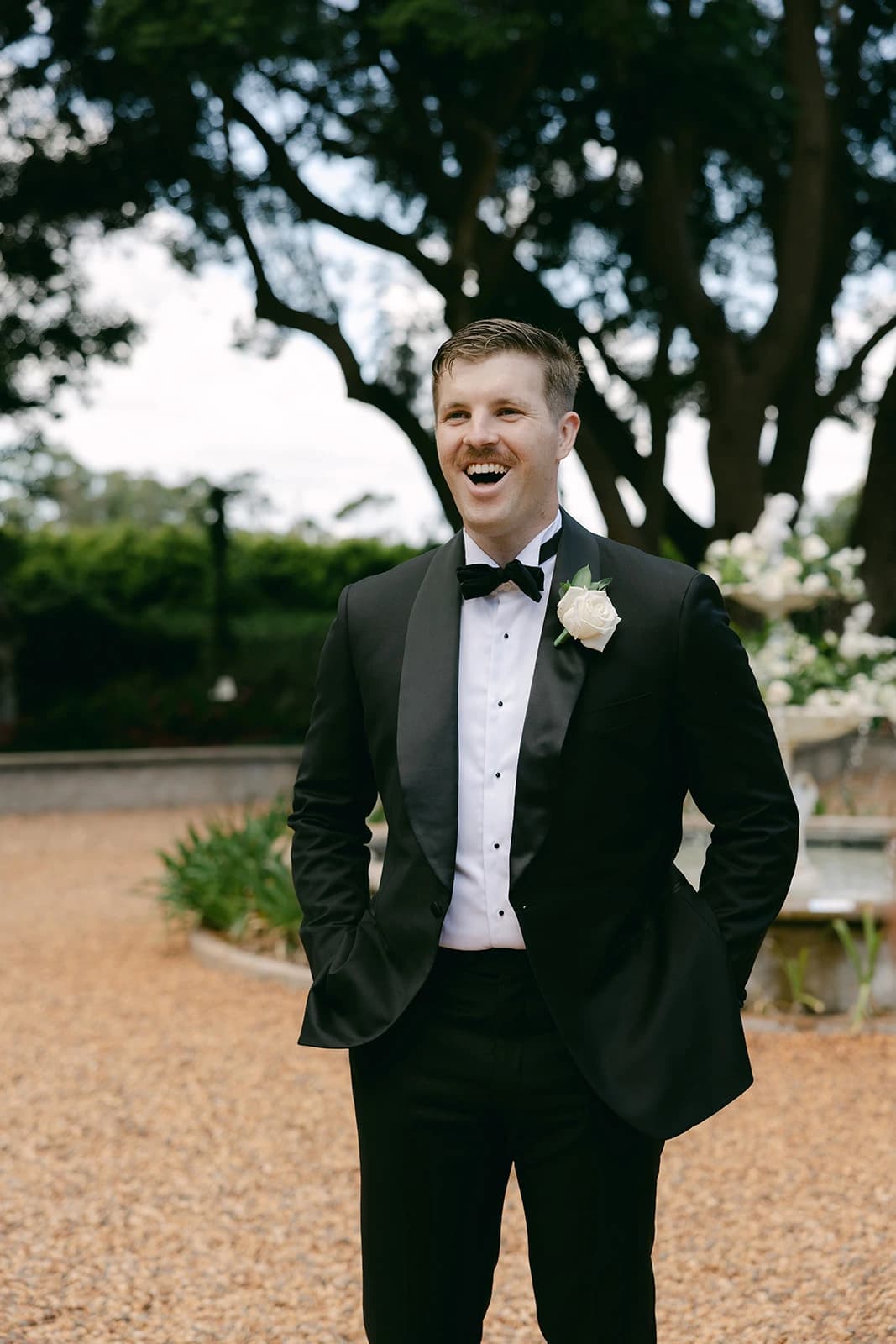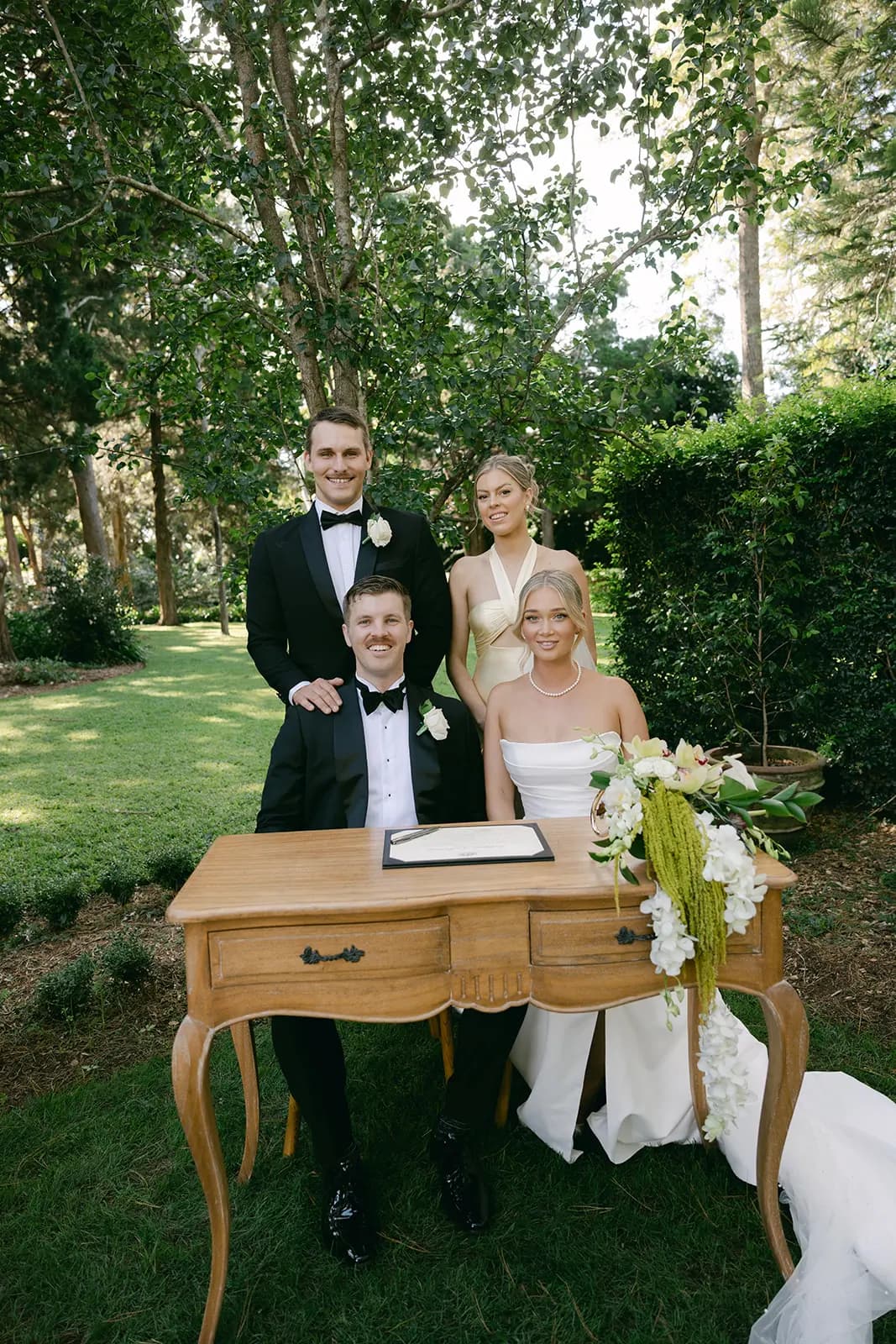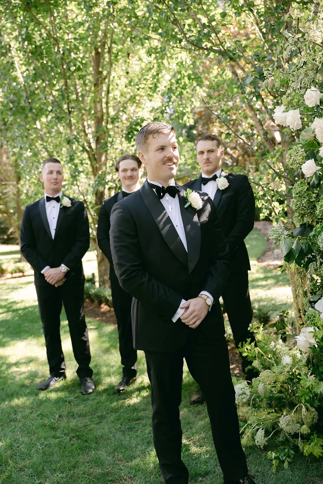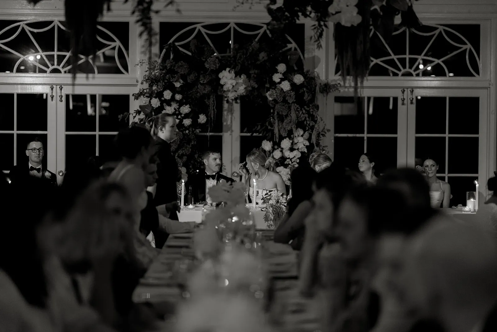 Beneath the Cedar’s Lawn, shaded by towering trees and framed by sculptural white blooms, Alyssa and Max exchanged vows — their words felt, not just heard, cradled by the soft rustle of leaves. Alyssa’s gown, a gentle ripple of fabric, moved with the same quiet grace as her steps, while Max’s black-tie formality offered a reassuring weight, grounding the day’s softer edges. Inside the Conservatory, candlelight glowed against pressed linen, white accents, and a tower of coupe glasses that shimmered beside an evening kiss. From the first, perfume-sweet notes of morning to dusk beneath the glowing lights, every detail felt purposeful, rooted in care and joie de vivre.