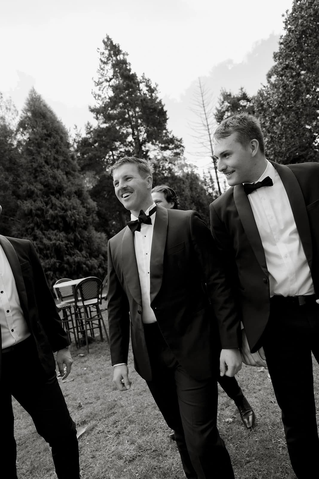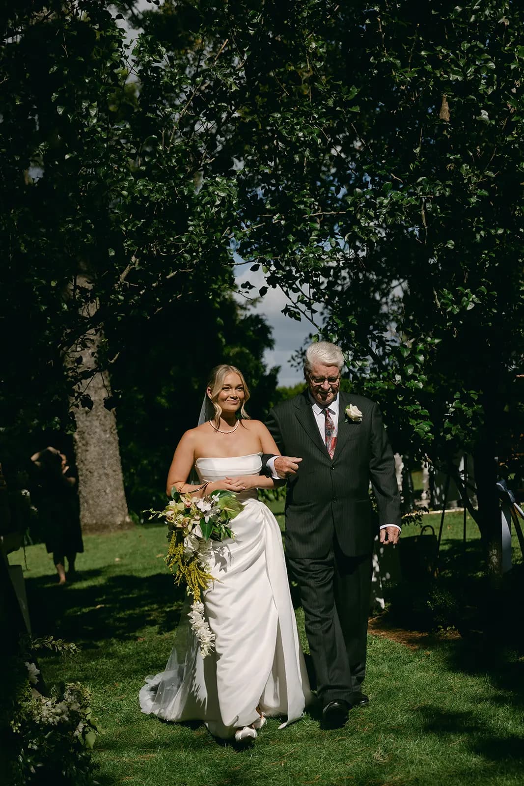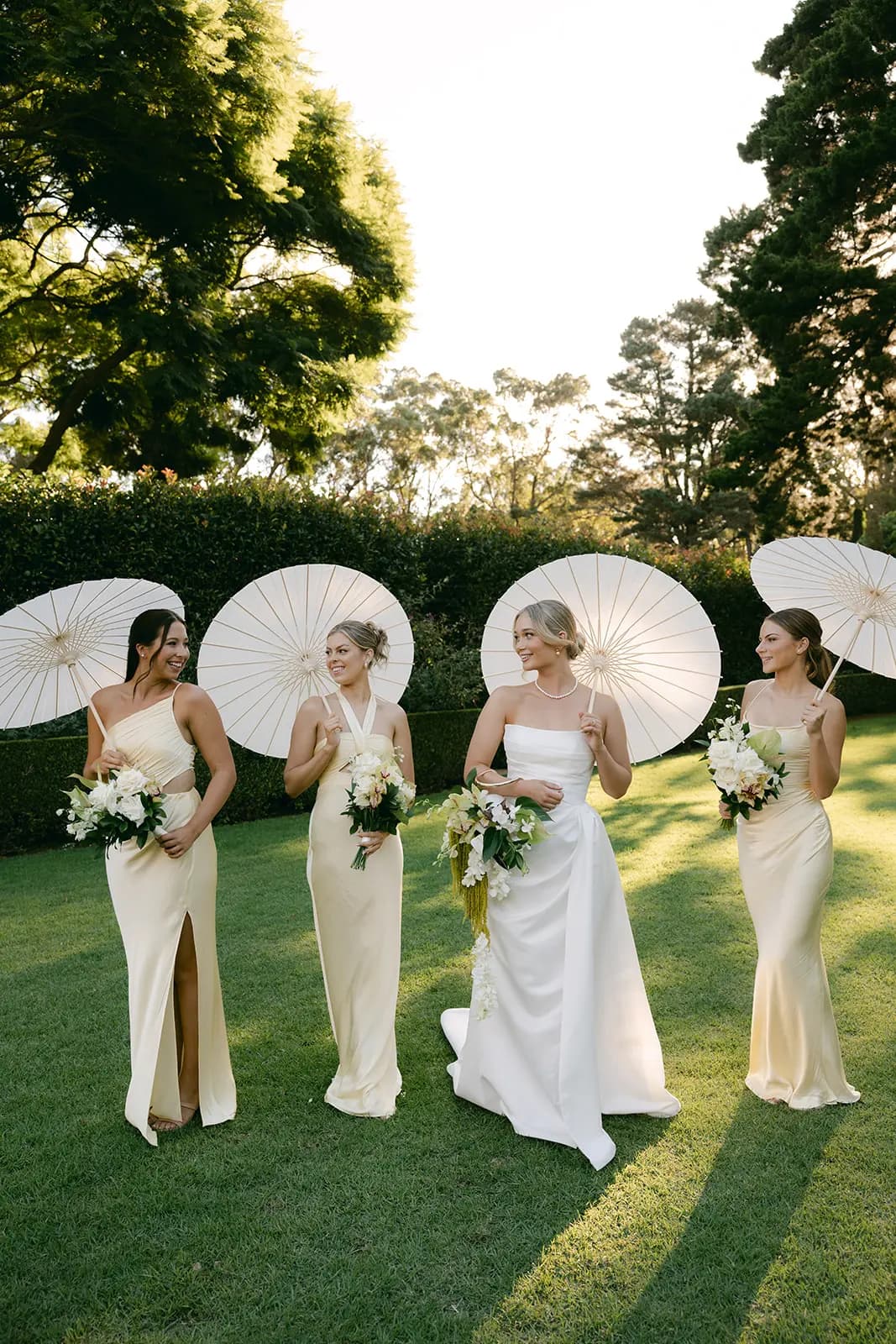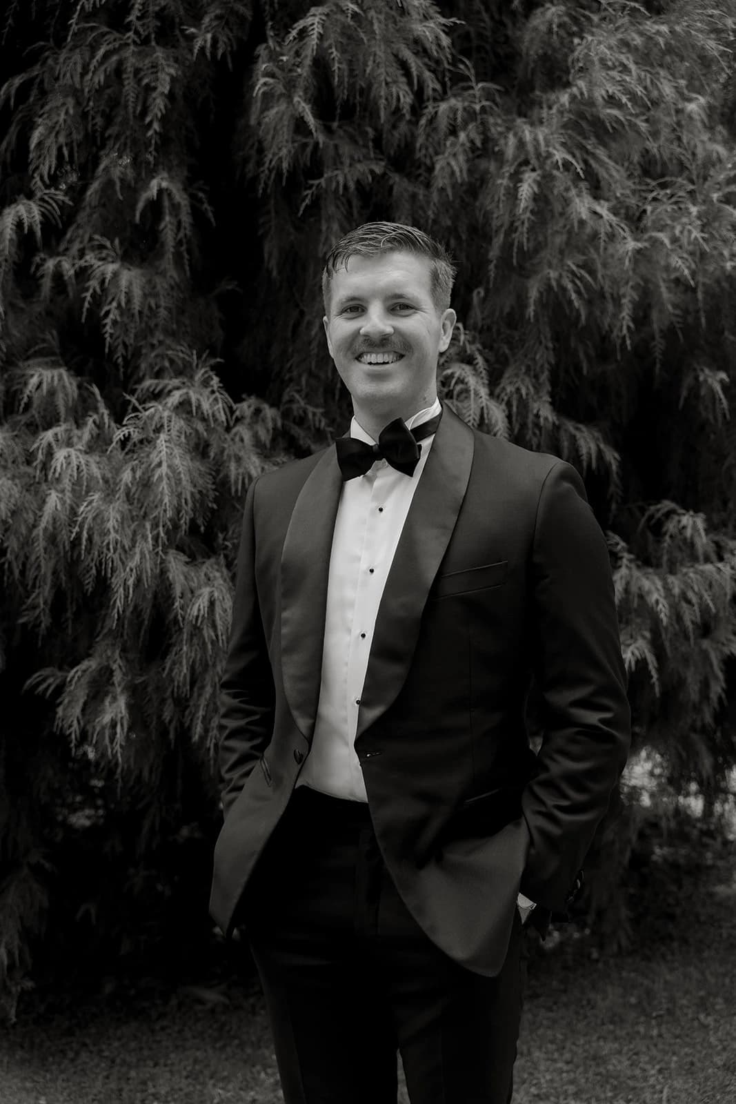 Beneath the Cedar’s Lawn, shaded by towering trees and framed by sculptural white blooms, Alyssa and Max exchanged vows — their words felt, not just heard, cradled by the soft rustle of leaves. Alyssa’s gown, a gentle ripple of fabric, moved with the same quiet grace as her steps, while Max’s black-tie formality offered a reassuring weight, grounding the day’s softer edges. Inside the Conservatory, candlelight glowed against pressed linen, white accents, and a tower of coupe glasses that shimmered beside an evening kiss. From the first, perfume-sweet notes of morning to dusk beneath the glowing lights, every detail felt purposeful, rooted in care and joie de vivre.