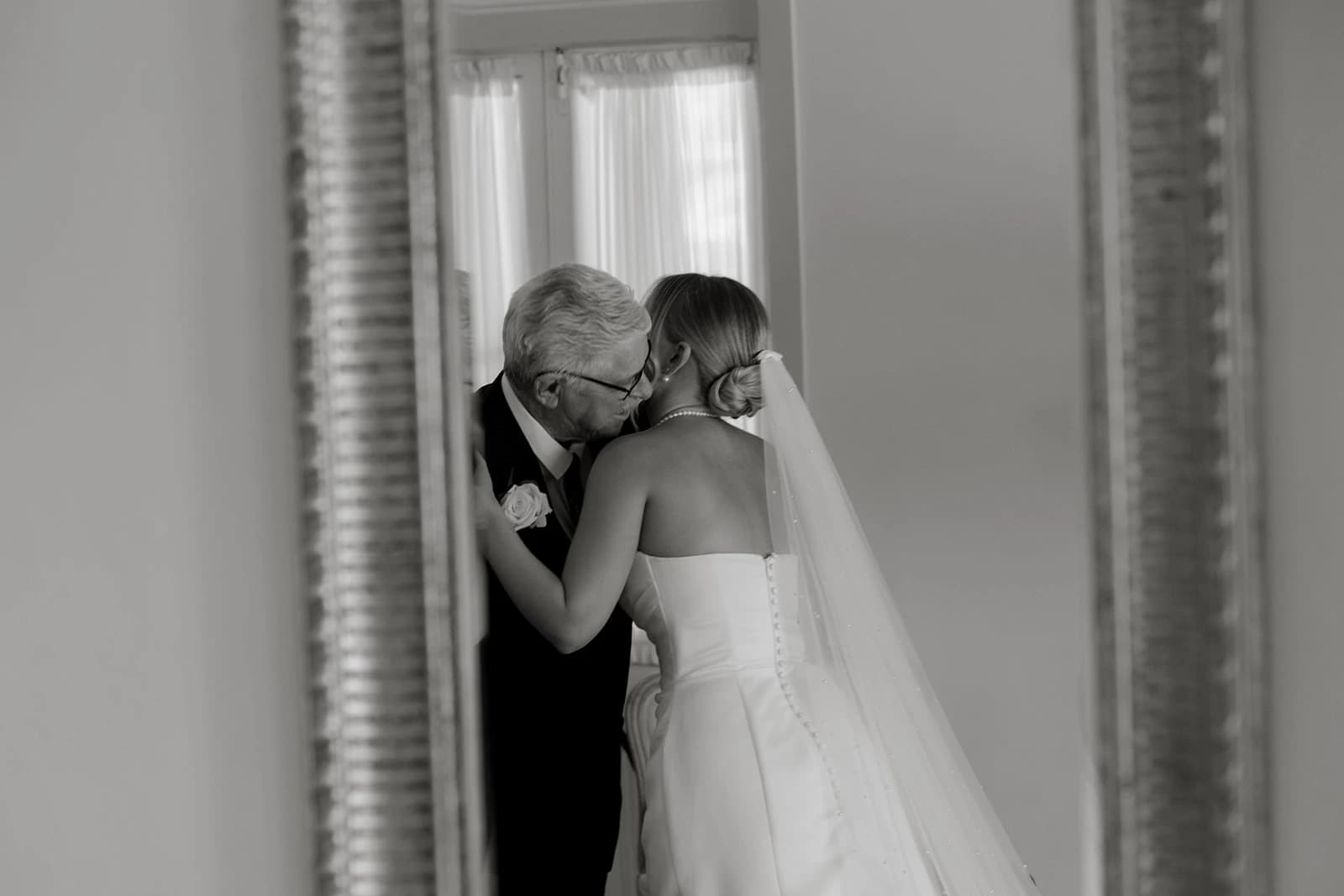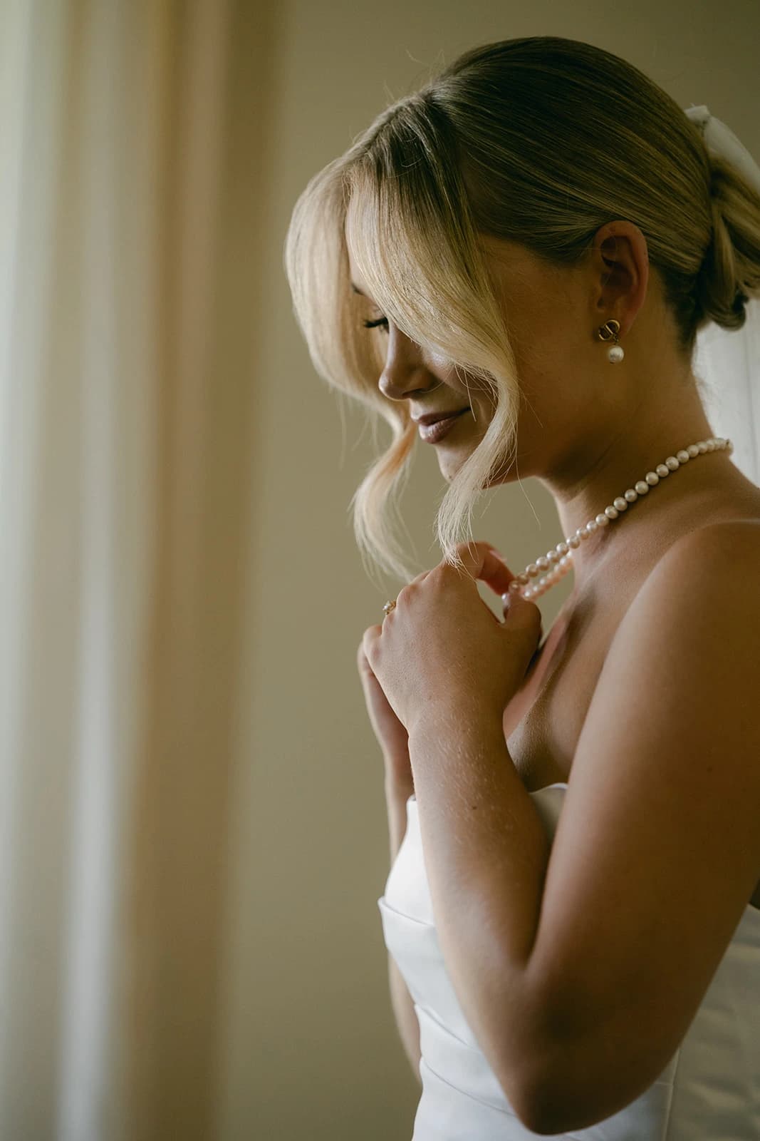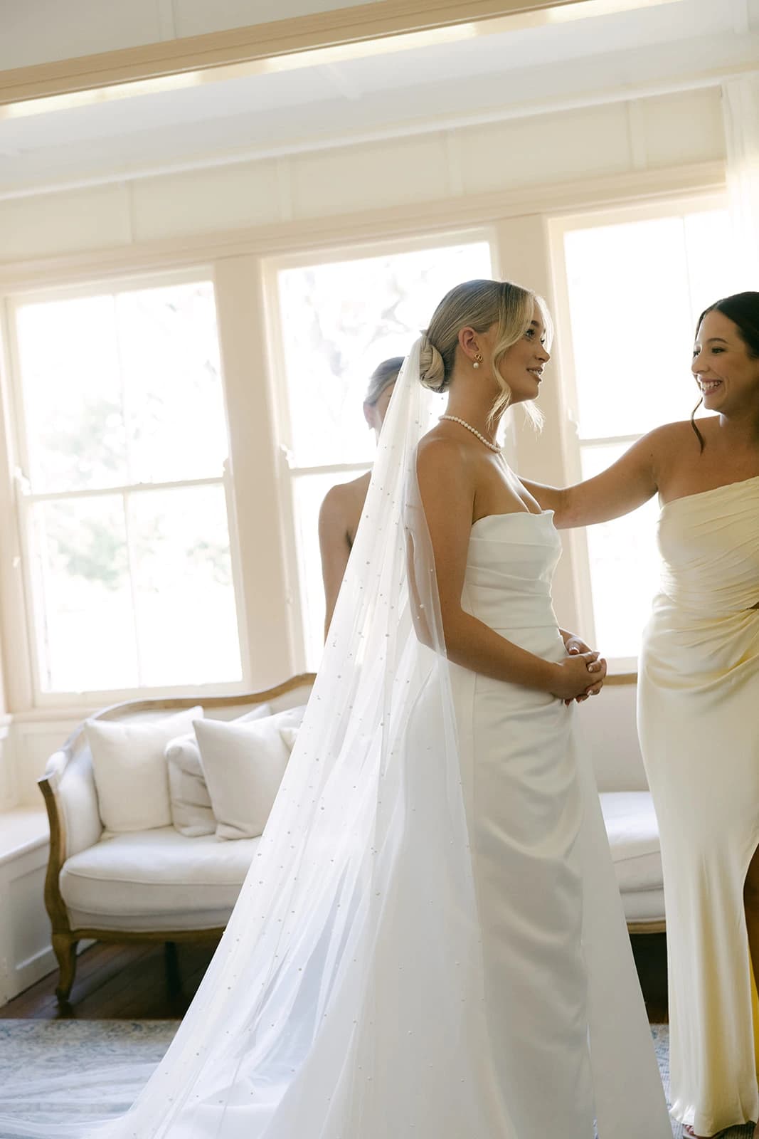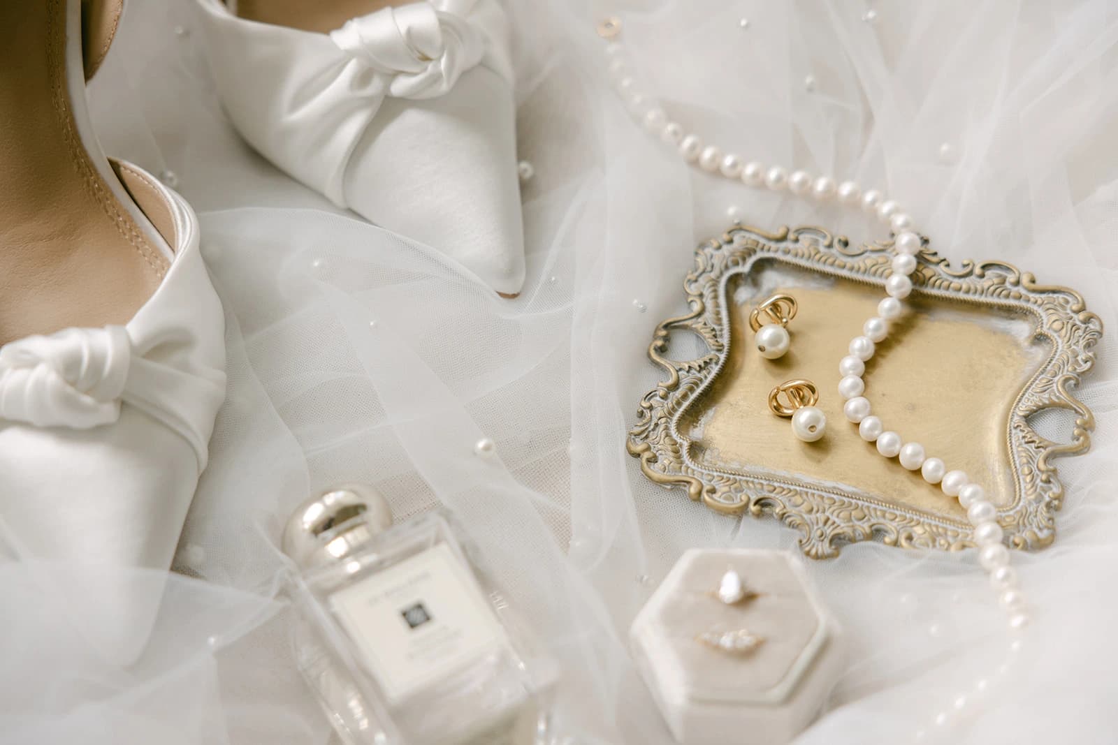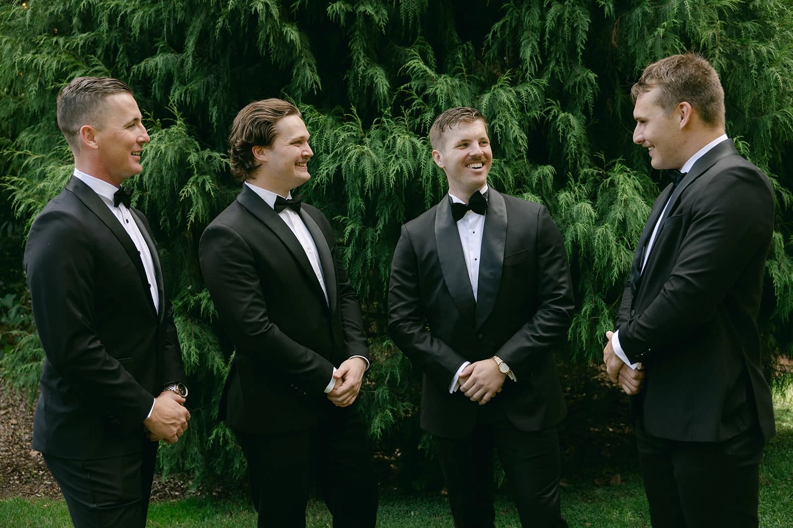 Beneath the Cedar’s Lawn, shaded by towering trees and framed by sculptural white blooms, Alyssa and Max exchanged vows — their words felt, not just heard, cradled by the soft rustle of leaves. Alyssa’s gown, a gentle ripple of fabric, moved with the same quiet grace as her steps, while Max’s black-tie formality offered a reassuring weight, grounding the day’s softer edges. Inside the Conservatory, candlelight glowed against pressed linen, white accents, and a tower of coupe glasses that shimmered beside an evening kiss. From the first, perfume-sweet notes of morning to dusk beneath the glowing lights, every detail felt purposeful, rooted in care and joie de vivre.