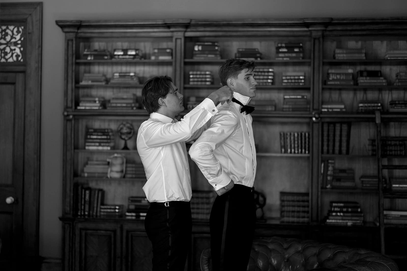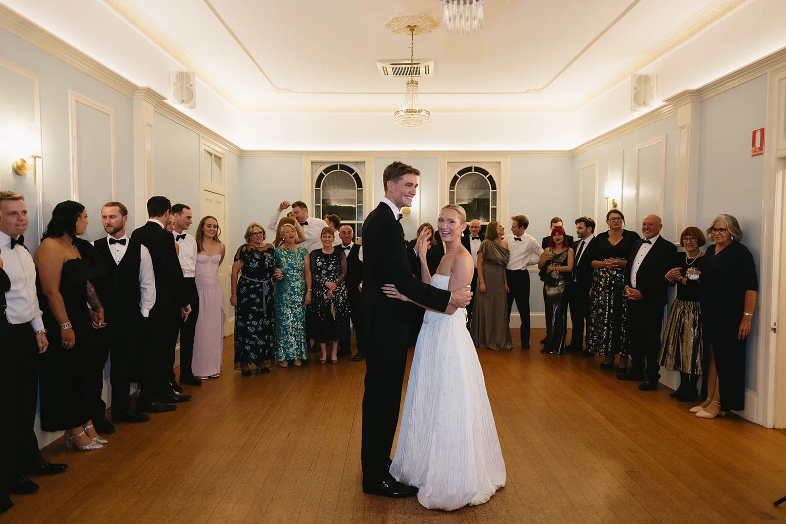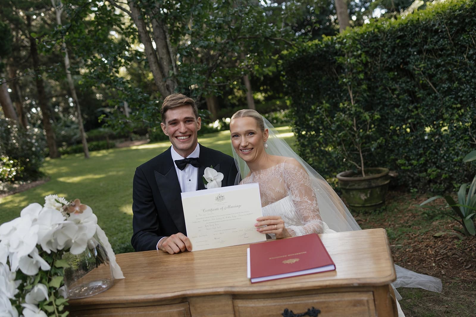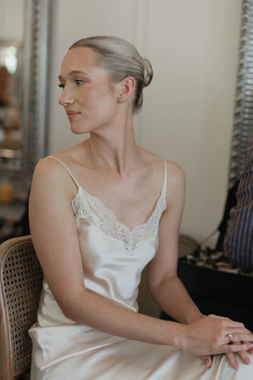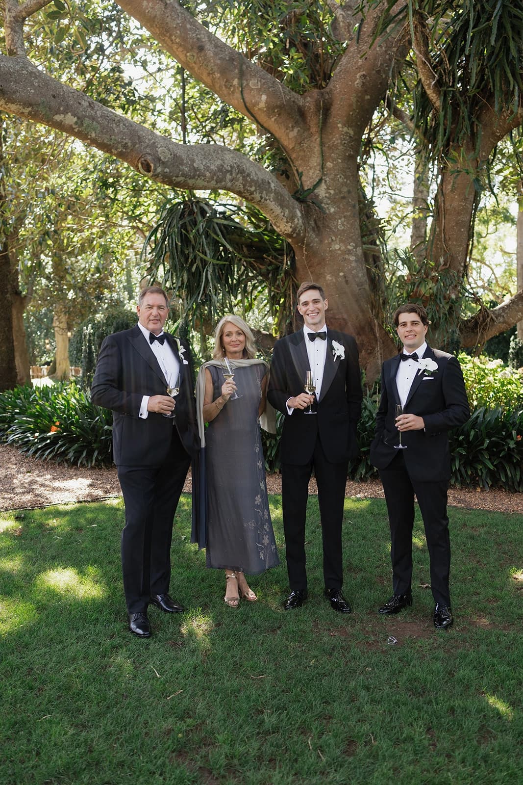 Their vows were spoken beneath the hush of towering trees, where ivory ribbons traced the aisle and roses clustered at the base of a grand cedar, wild and unstructured as if grown just for them. Her gown, pleated like pressed silk, caught the light with every step, and the air held the stillness of something sacred. Later, laughter gathered in the Conservatory, spilling into the night with the clink of glassware and candlelight flickering against pressed linens. There was a certain quiet joy to it all. Even the cake, crowned in perfect raspberries, felt artful in its restraint. A day composed with grace.