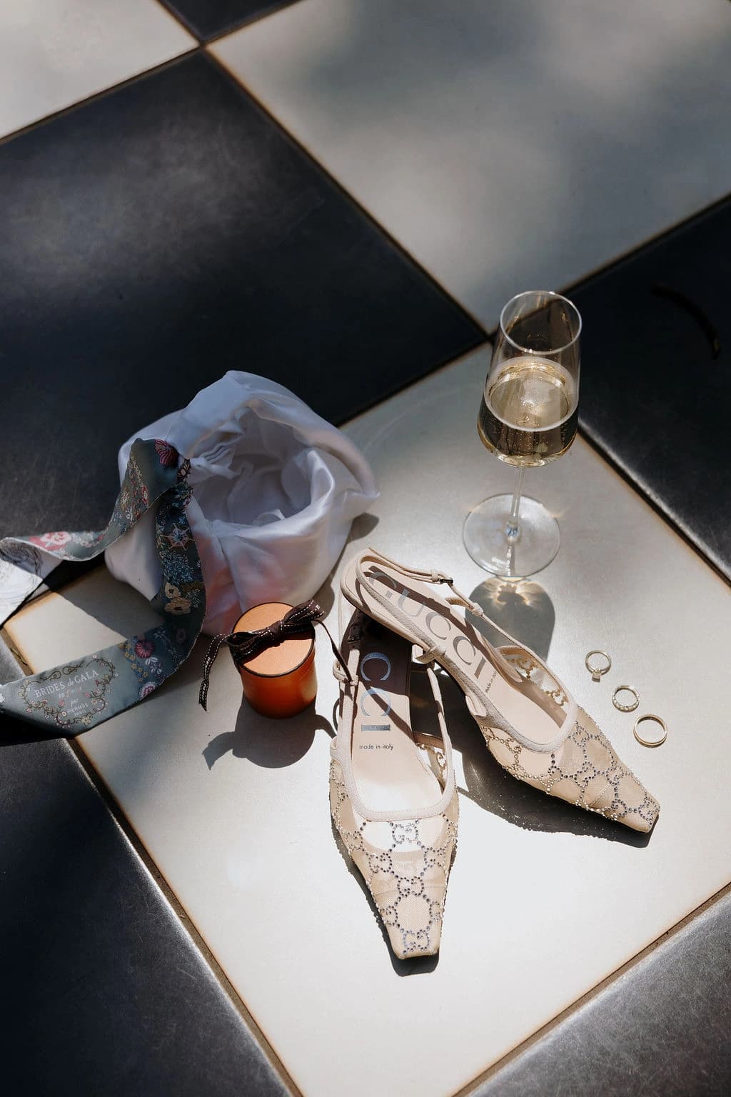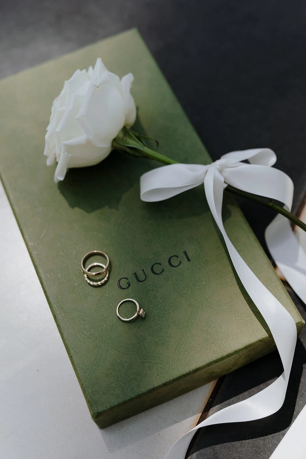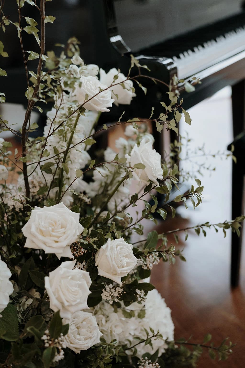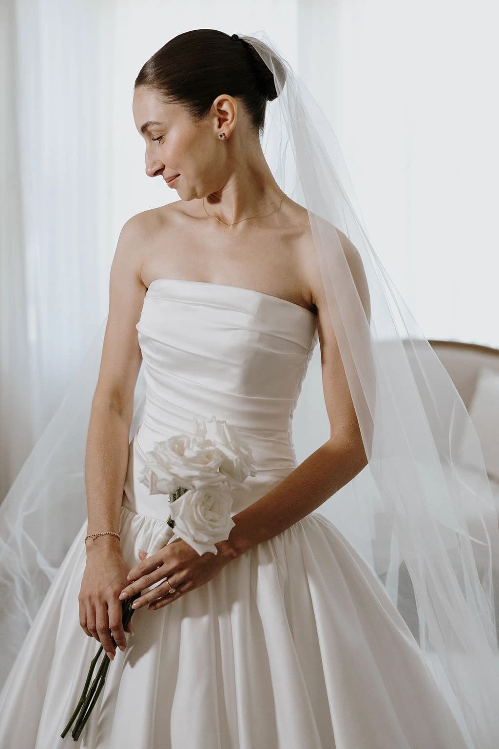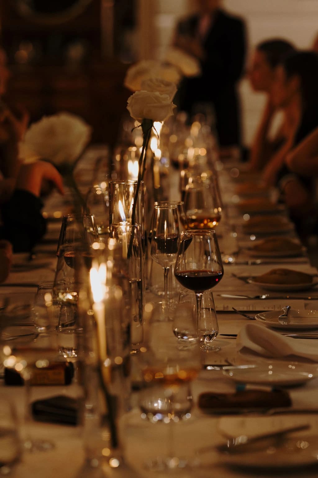 October light lingered gently across the Governor’s Lawn, soft and clear beneath the great fig trees. White roses and delphiniums framed the aisle, their petals shifting in the breeze while long ivory ribbons trailed from each chair, lifting softly as guests gathered. Her gown — a sculptural silk design with delicate ruching and a sweeping full skirt — moved with quiet grace, the fabric catching the light as she walked. He stood waiting in a black tuxedo and hand-tied bow, the scene poised in stillness. When vows were spoken, laughter and petals filled the air, a garden moment suspended in time. Later, the Conservatory was surrounded by blooms once more as candlelight gathered on the tables. She had changed into a sleek halter gown with long scarf ties that floated as they danced, the room warm with applause and the ease of celebration — a night that felt as graceful as it began.