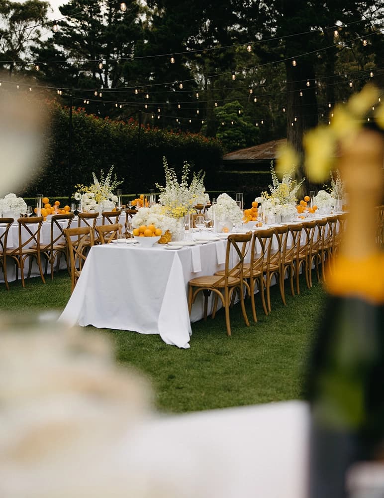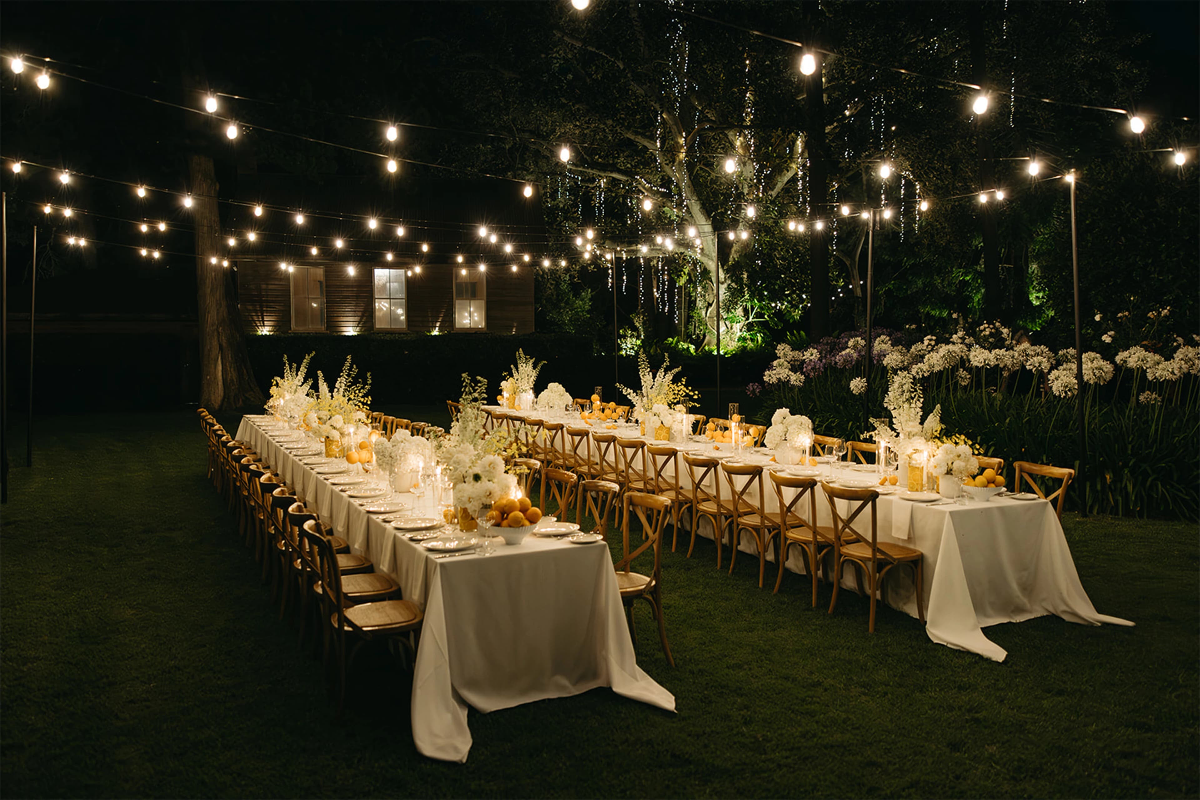 There is an enduring magic that lingers in the air in the evenings at Gabbinbar. As twilight falls and festoon lights cast a warm glow, the Homestead Lawn transforms into a setting of effortless elegance. Surrounded by century-old trees and the gentle beauty of Gabbinbar's gardens, this enchanting space creates an unforgettable backdrop for a reception that reflects your love story.