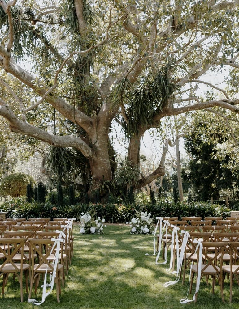The Gabbinbar gardens are over 160 years old and cover many acres of the wedding venue. The large fig, bunya and cedar trees were planted in 1863 and tower over the historic estate creating a feeling of calmness and tranquility, seamlessly blending serene indoor and outdoor spaces. These evergreen trees, combined with freshly mowed lawns, precision-trimmed hedging and seasonal blooms leave an indelible imprint that lingers in memories for years to come.