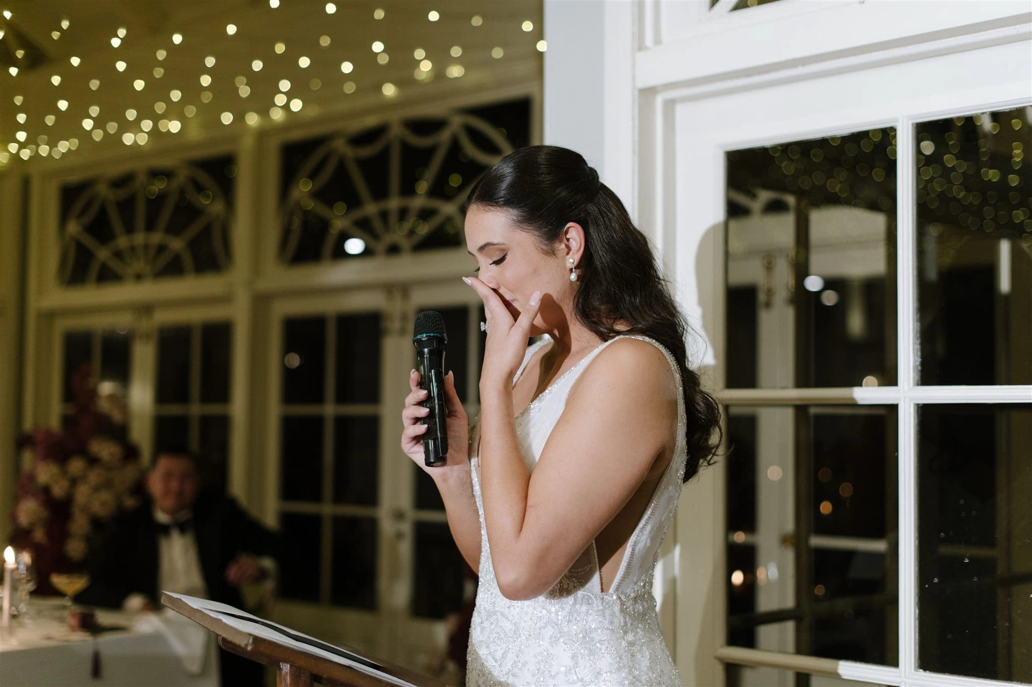' Today is filled with joy, but also with a quiet space where someone so important should be. [Parent who has passed away], I feel you with me in every step down this aisle, in every breath of this moment. Your love shaped me, your voice still guides me, and your strength lives in my heart. I know you would have adored today—and I carry you with me into this next chapter.'