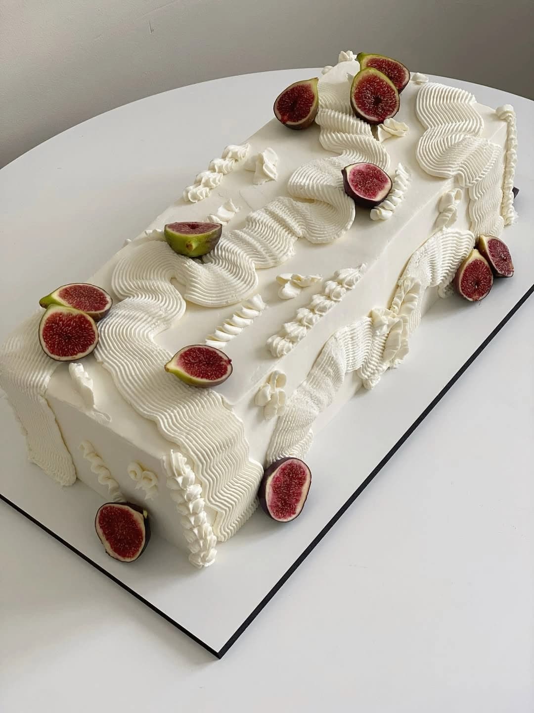 "A rectangular cake doesn't compete with its decoration — it holds it, frames it, lets the work breathe."