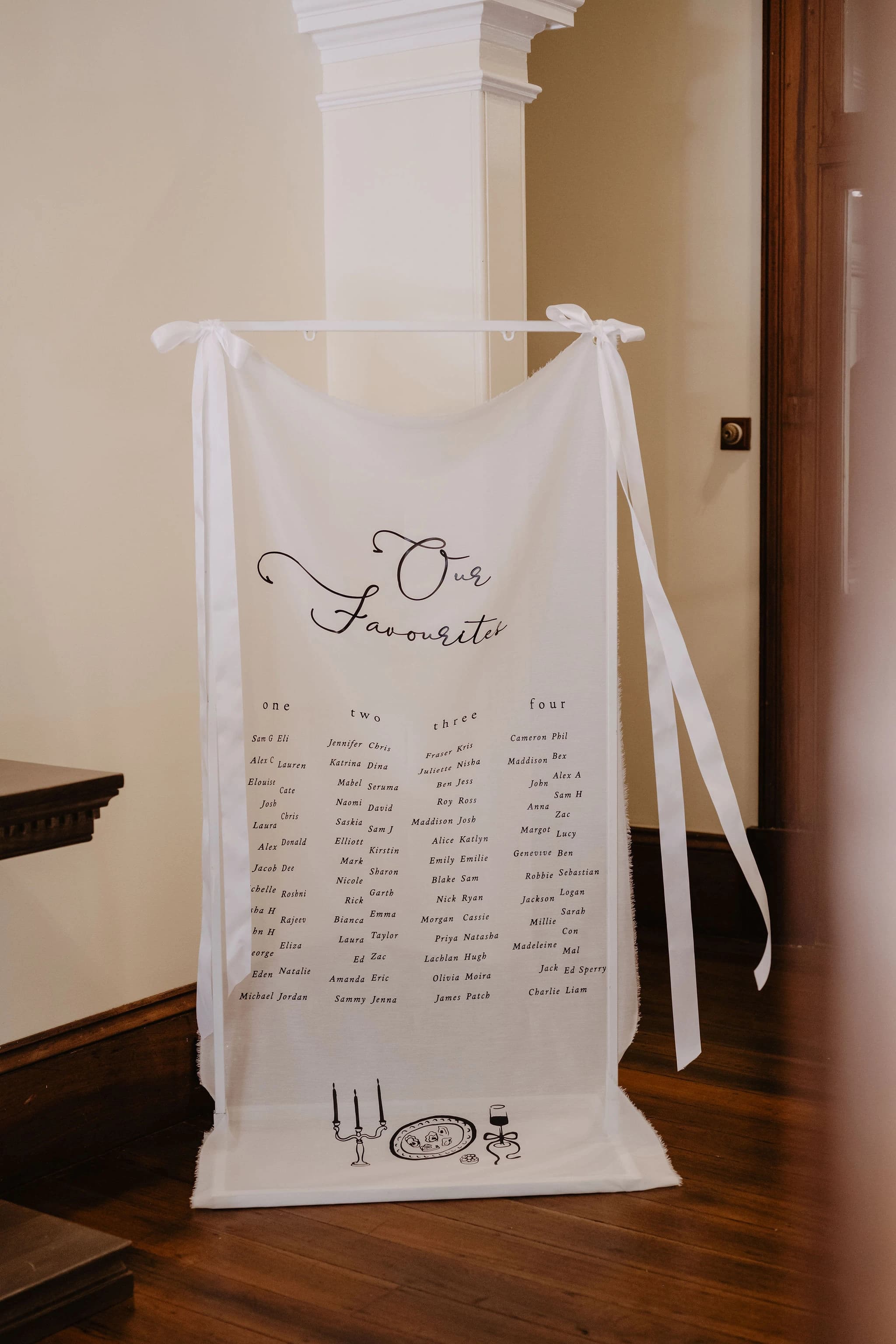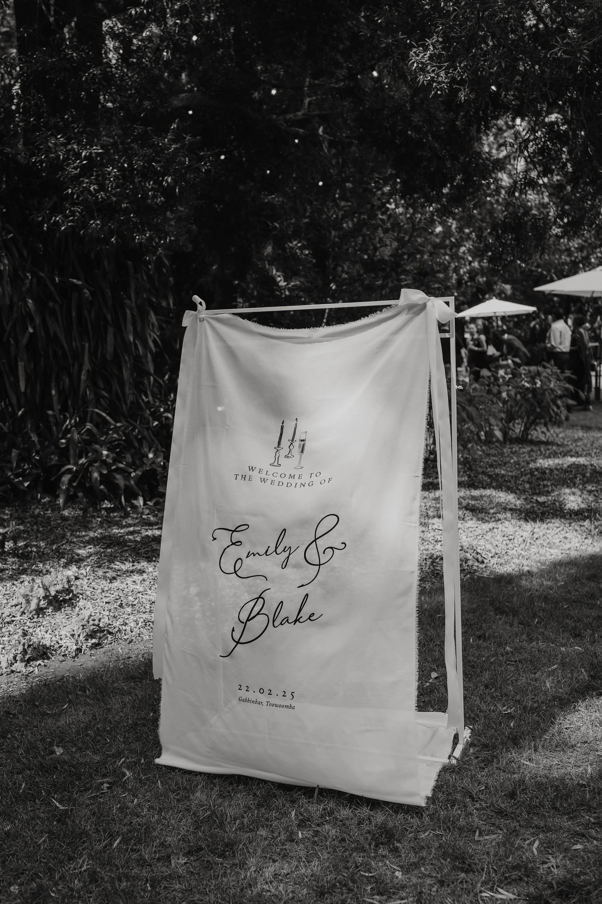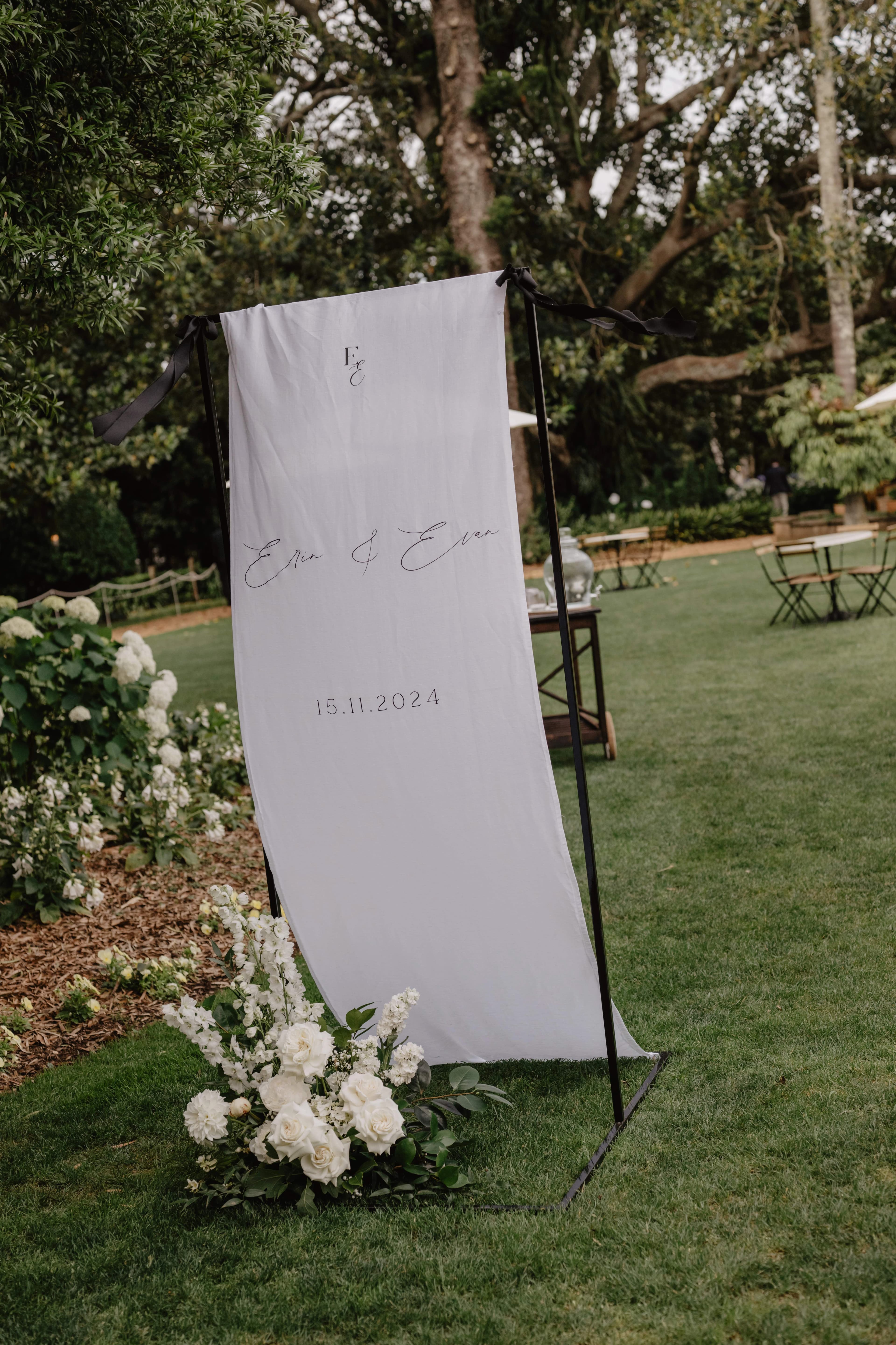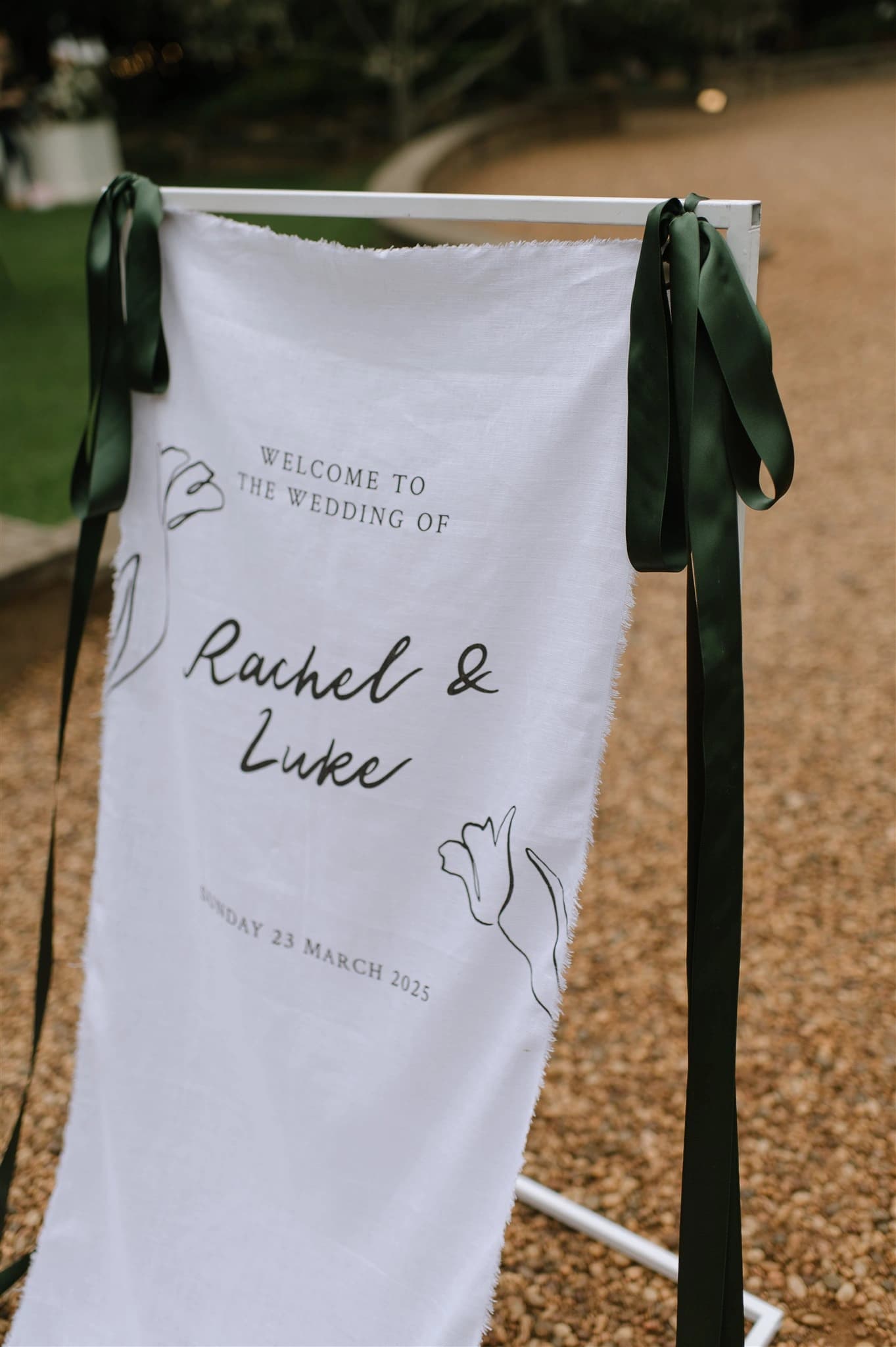 In weddings across Australia this year, one small detail keeps catching our eye: fabric signage.