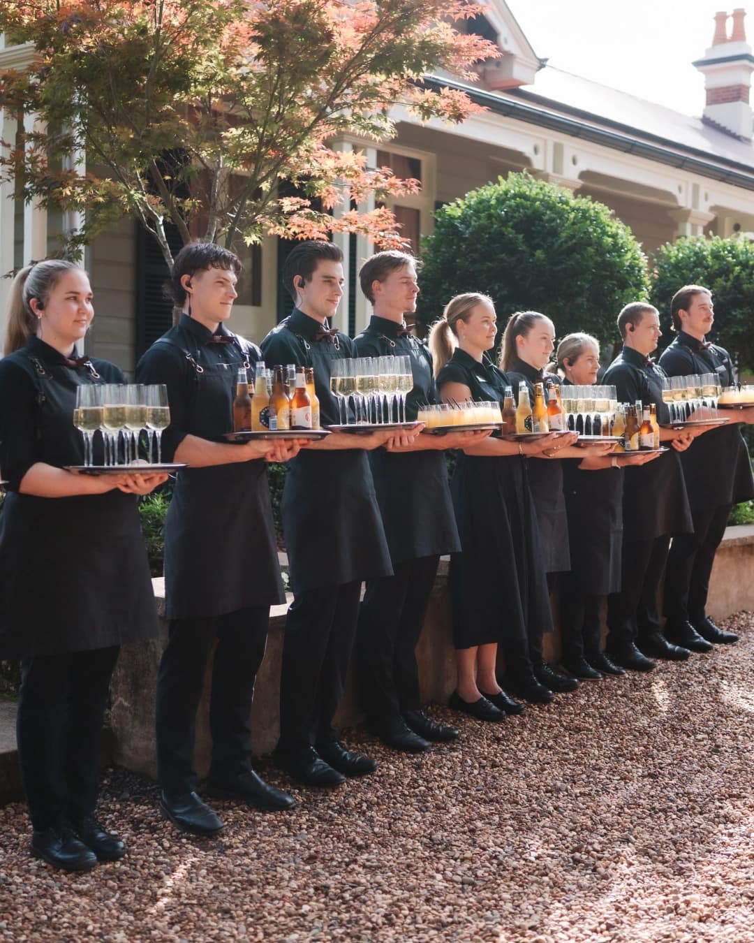 This is also one of the most personal canvases your reception offers. At Gabbinbar, couples can choose bubbles on arrival — from the 42 Degrees South Sparkling Wine to the Louis Roederer Collection Brut NV — or go further with a bespoke cocktail round from a menu that includes a Bloody Shiraz Gin Spritz, a Yuzu & Peach Spritz, or a Paloma with rhubarb liqueur and ruby grapefruit. For something truly theatrical, a French Champagne Tower in the Garden Party creates a moment guests will talk about long after the day is done.