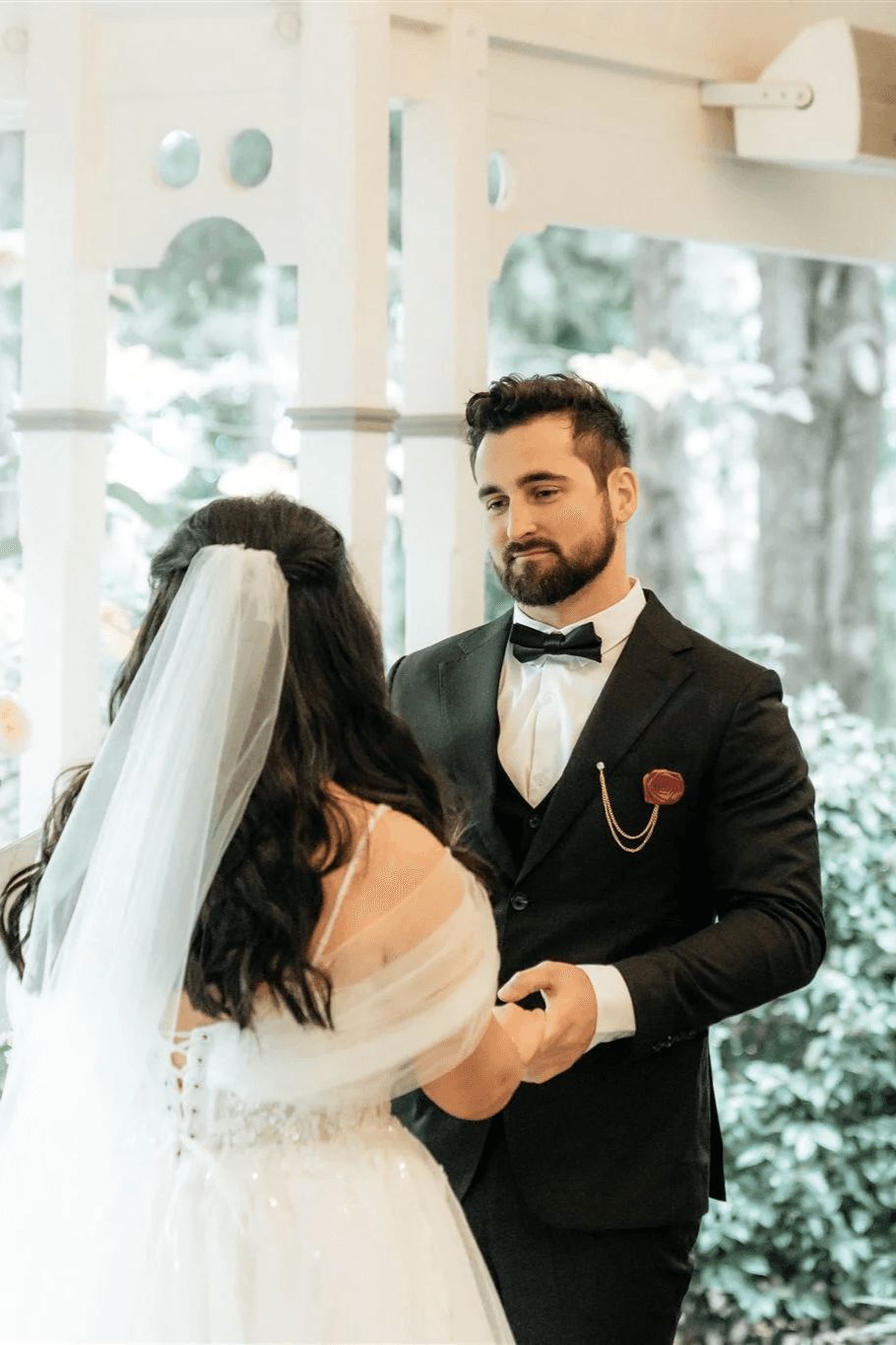 Their ceremony took place in the Pavilion, where the intimate, cozy space, soft lights and delicate florals enhanced the warmth of their vows.