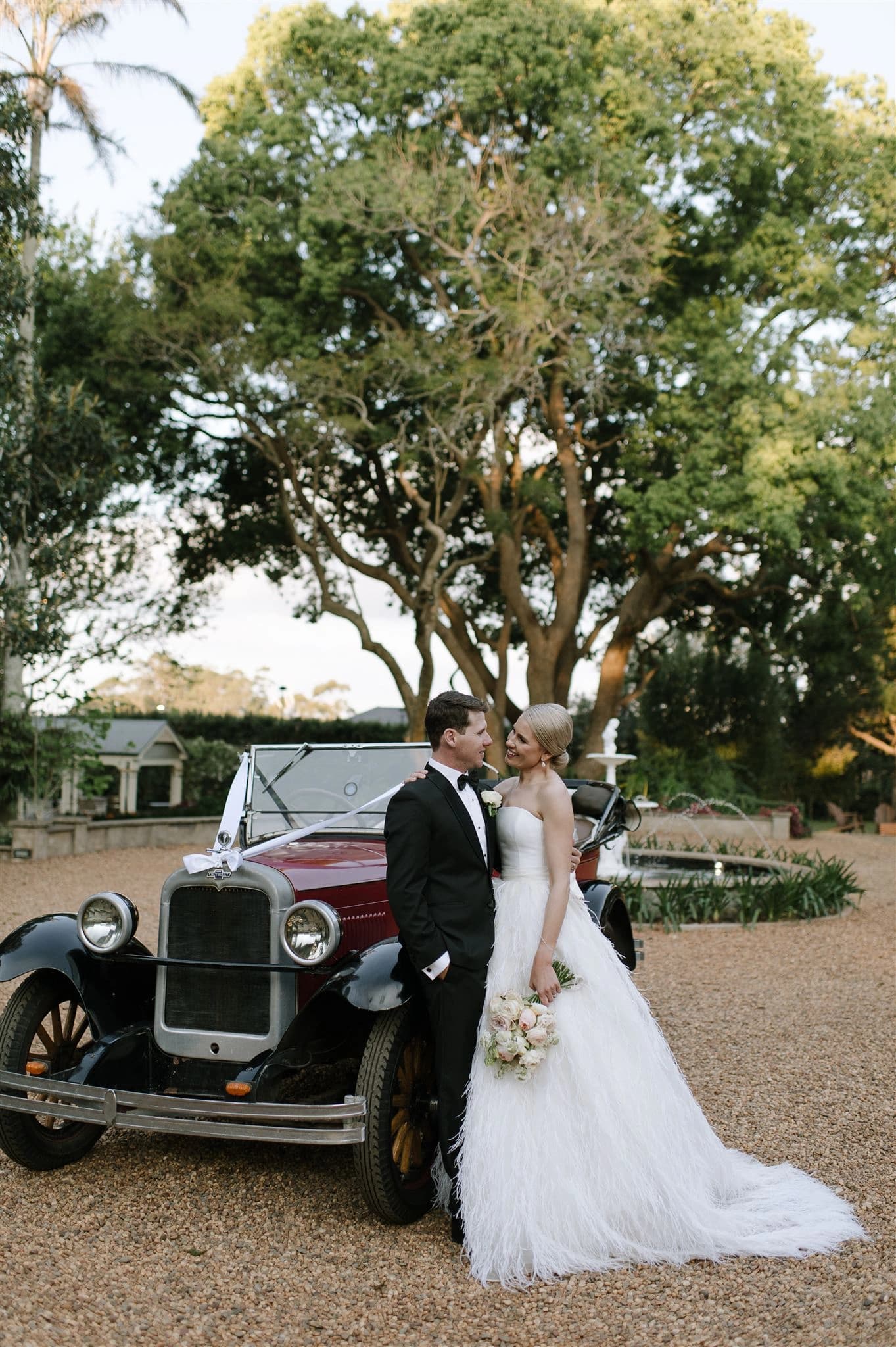 Sunlight gathered softly beneath the Pavilion, filtering through folds of fabric and the delicate weave of her veil. Pale blooms framed the aisle, their petals lifting gently in the breeze. He stood in a classic black bow tie, composed yet alight with quiet anticipation, as ribbons tied to each chair fluttered in time with her steps. The day carried a sense of calm abundance — light pooling over polished timber, laughter warming the air, and moments unfolding with unspoken ease. As dusk arrived, candles caught the last of the day’s glow, holding it close as the evening deepened into celebration — poised, luminous, and deeply felt.