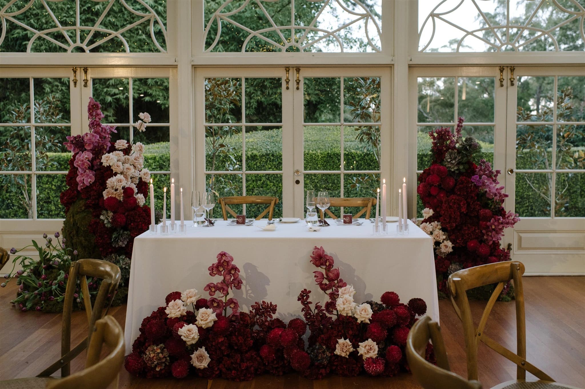 The Gabbinbar gardens are over 160 years old and cover many acres of the wedding venue. The large fig, bunya and cedar trees were planted in 1863 and tower over the historic estate creating a feeling of calmness and tranquility, seamlessly blending serene indoor and outdoor spaces. These evergreen trees, combined with freshly mowed lawns, precision-trimmed hedging and seasonal blooms leave an indelible imprint that lingers in memories for years to come.